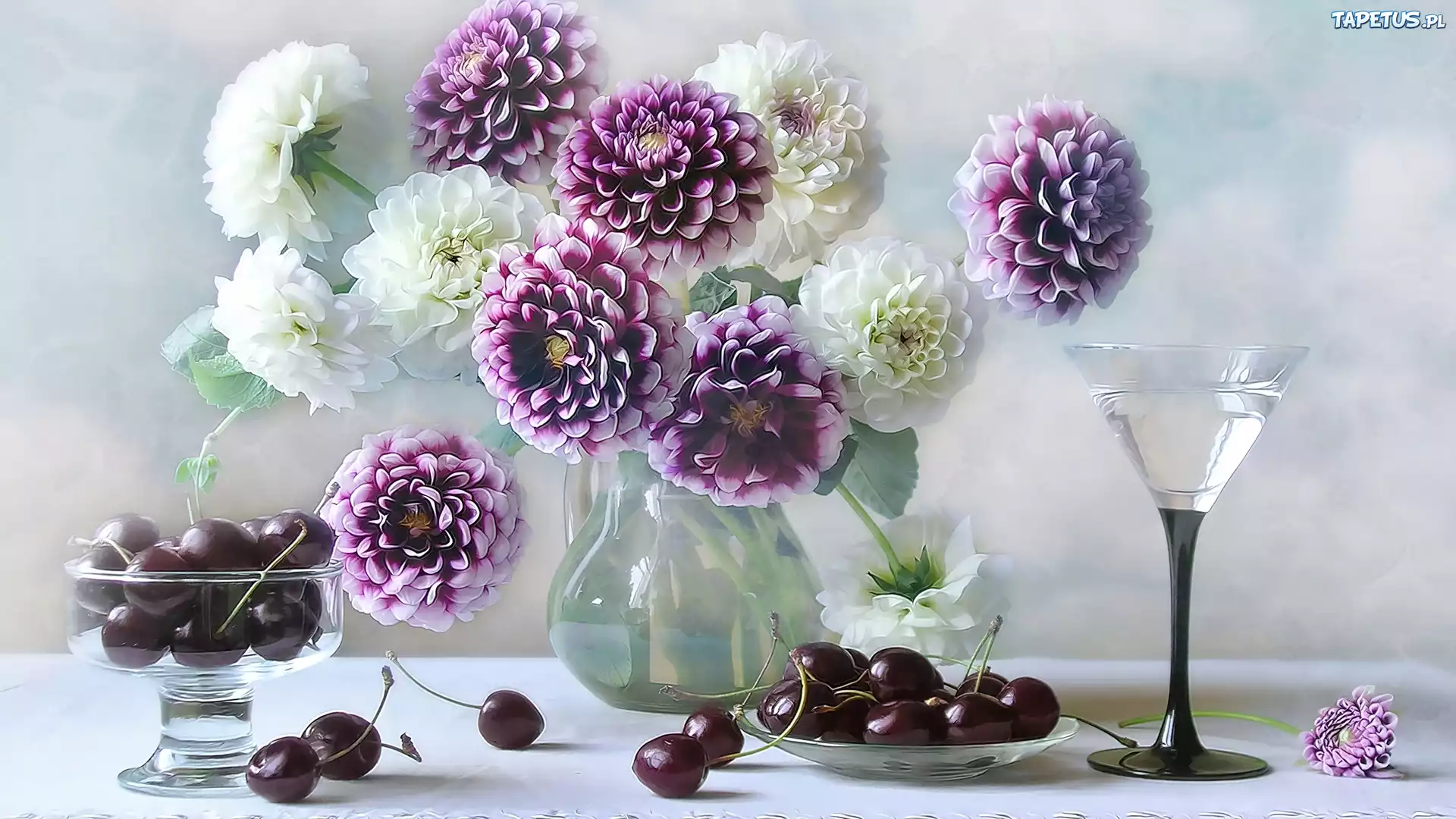 Słowa Kluczowe: Piękne , Dalie , Czereśnie , Szkło