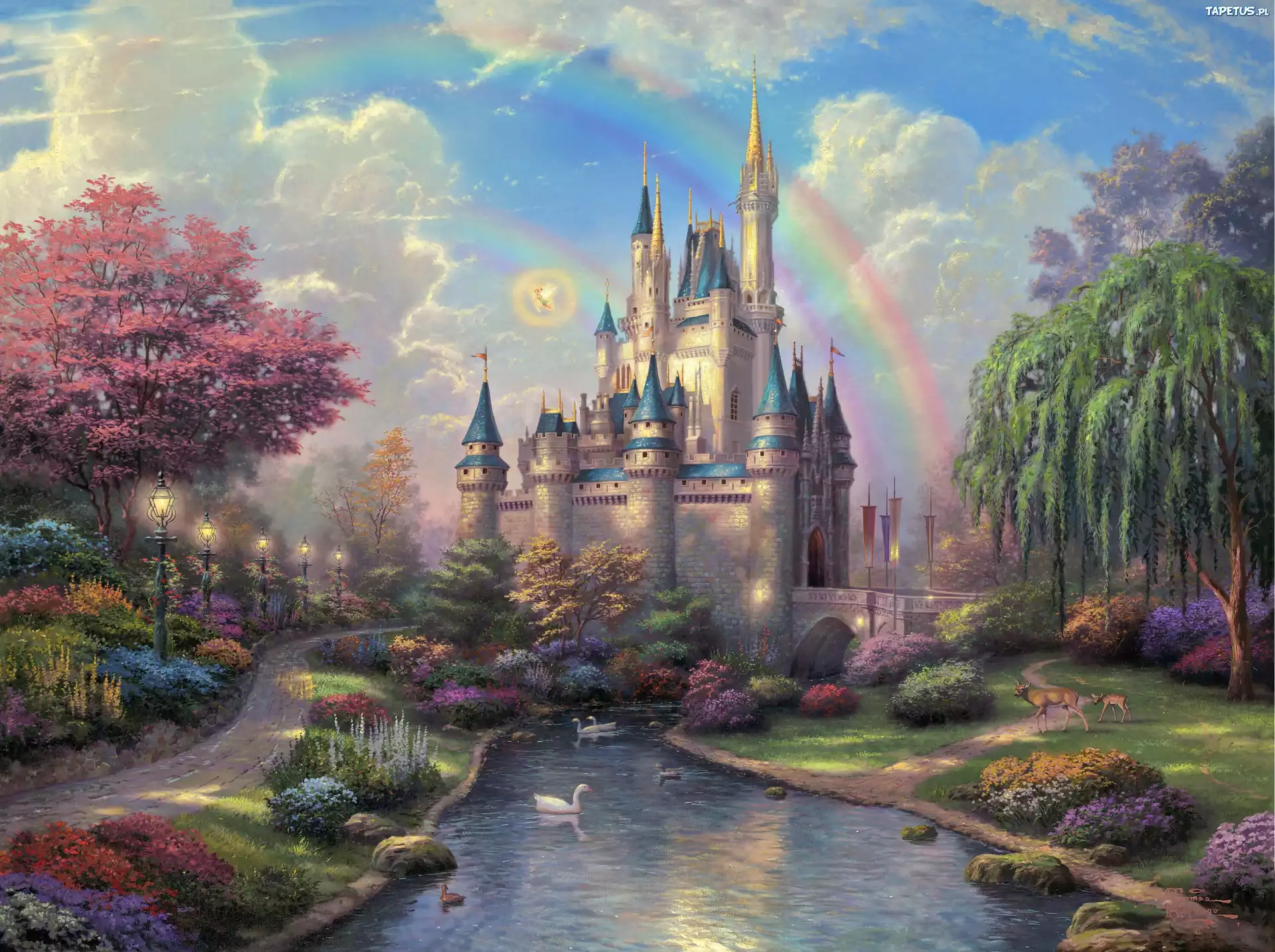 Tapeta Zamek, Rzeczka, Tęcza, Park