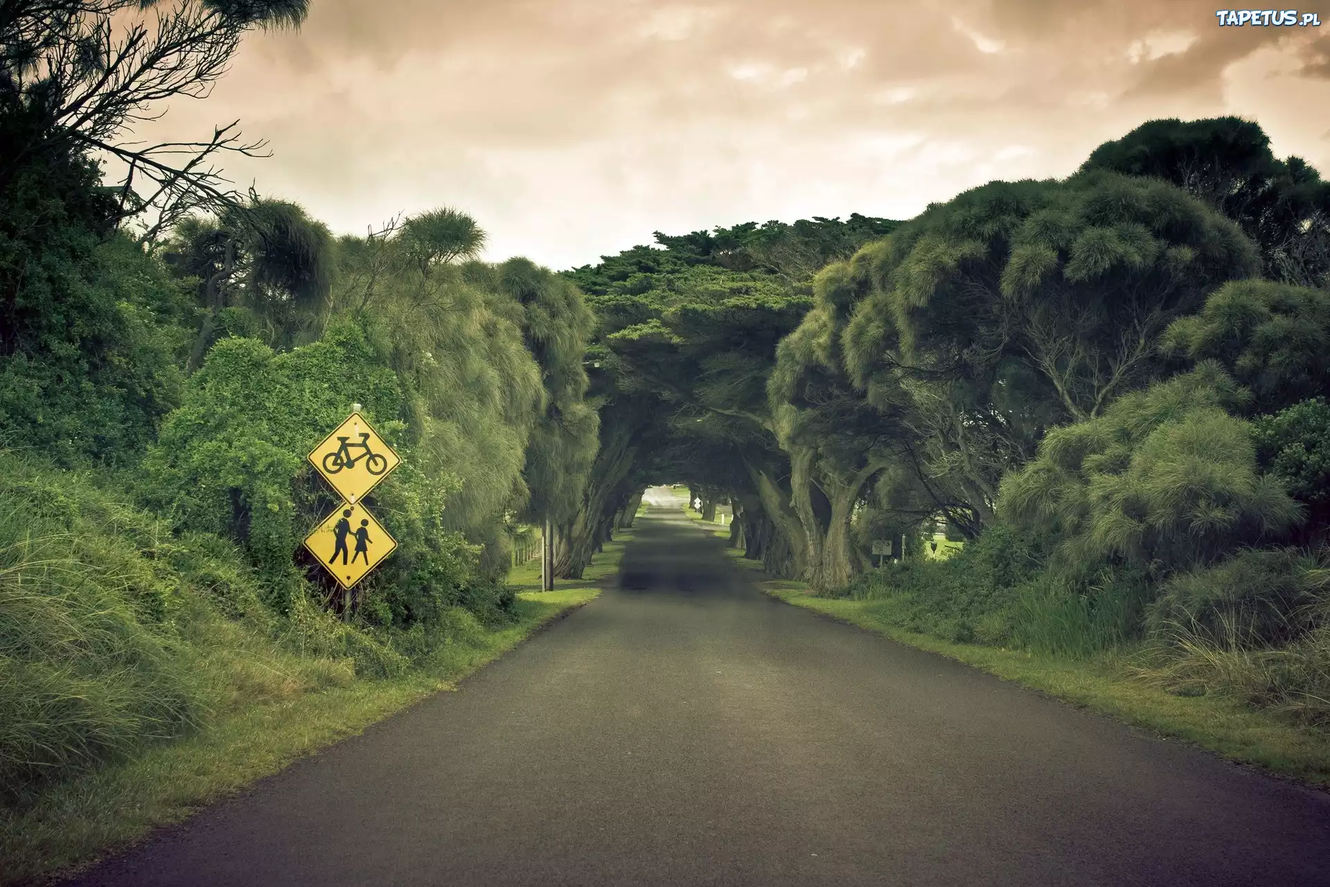 Tapeta Droga, Znaki, Egzotyczne, Drzewa