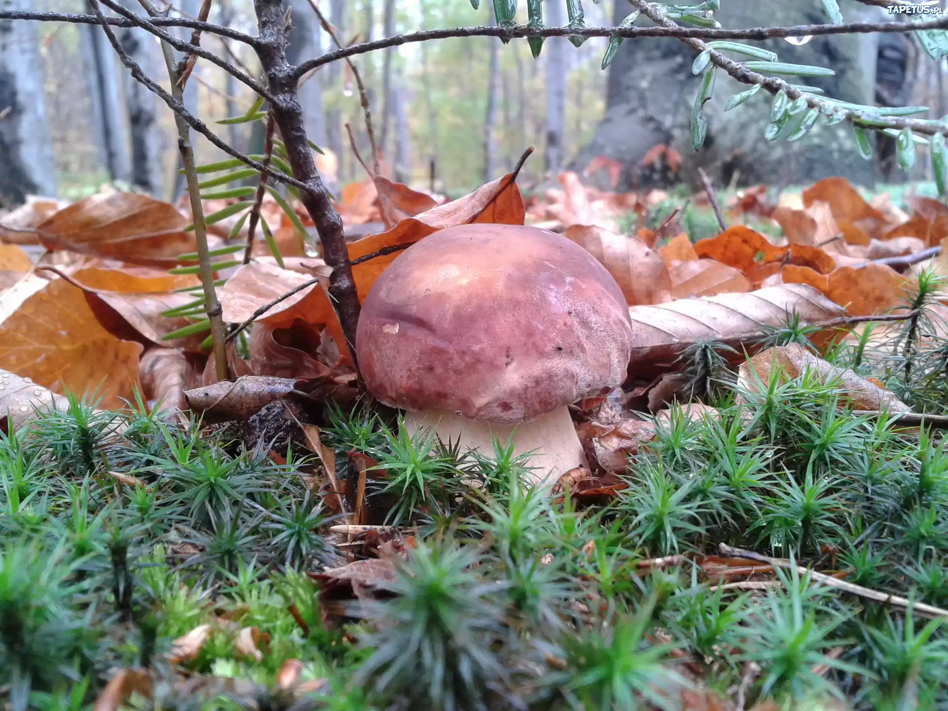 Tapeta Borowik, Las, Igliwie, Liście