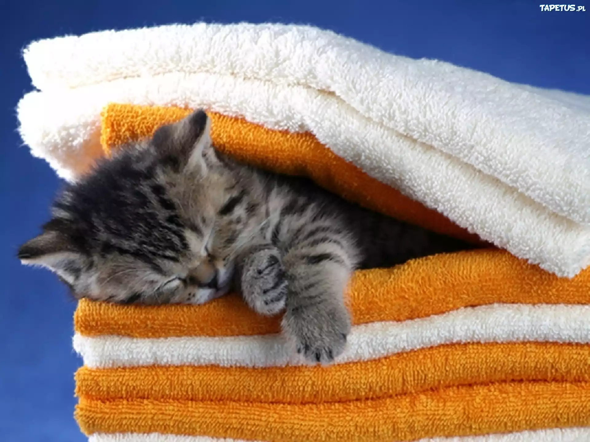 Tapeta Śpiący, Mały, Kotek, Ręczniki