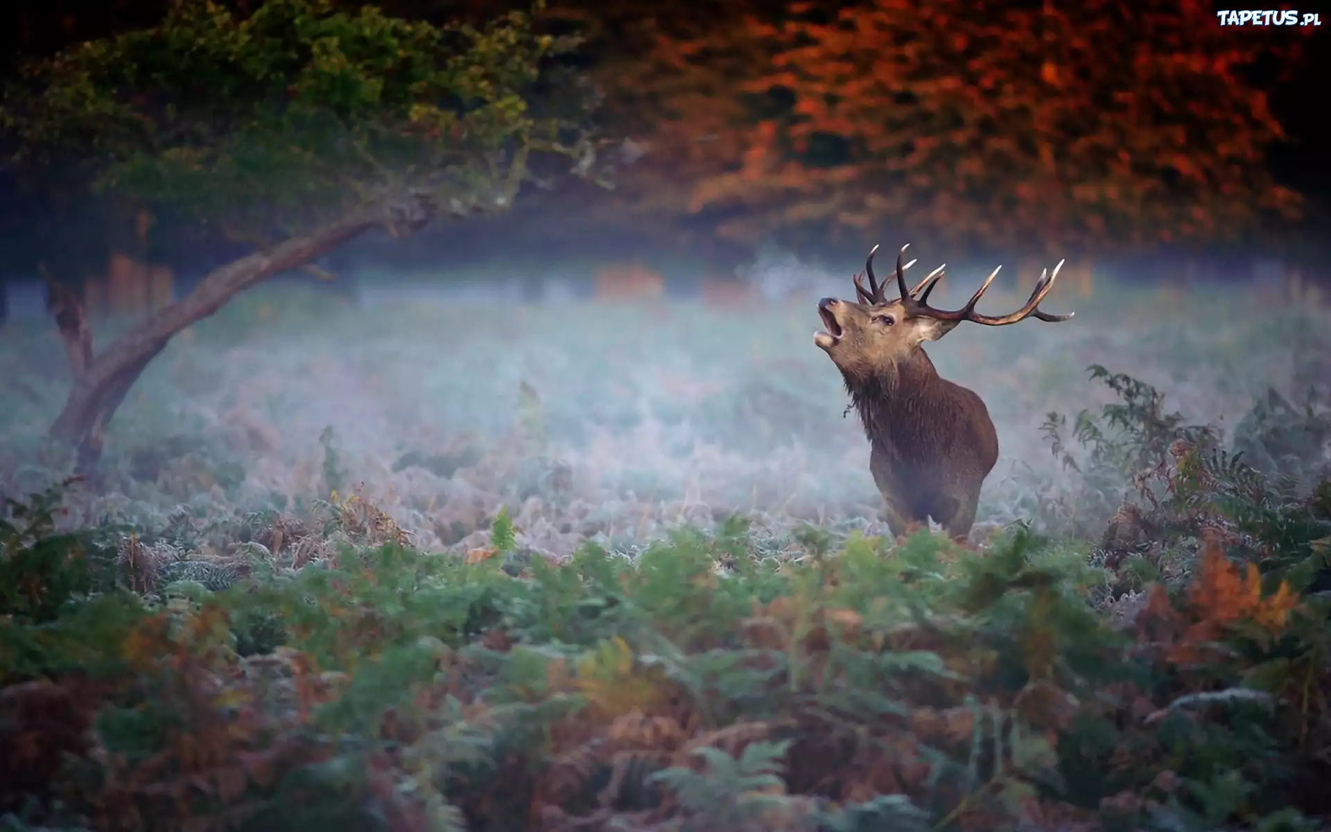 Tapeta Las, Mgła, Ryczący, Jeleń