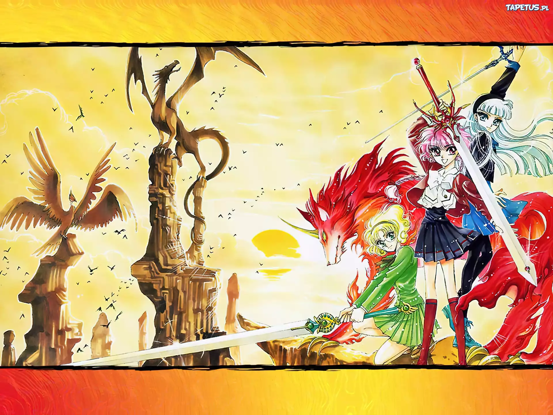 Tapeta smoki, ludzie, dziewczyny, Magic Knight Rayearth