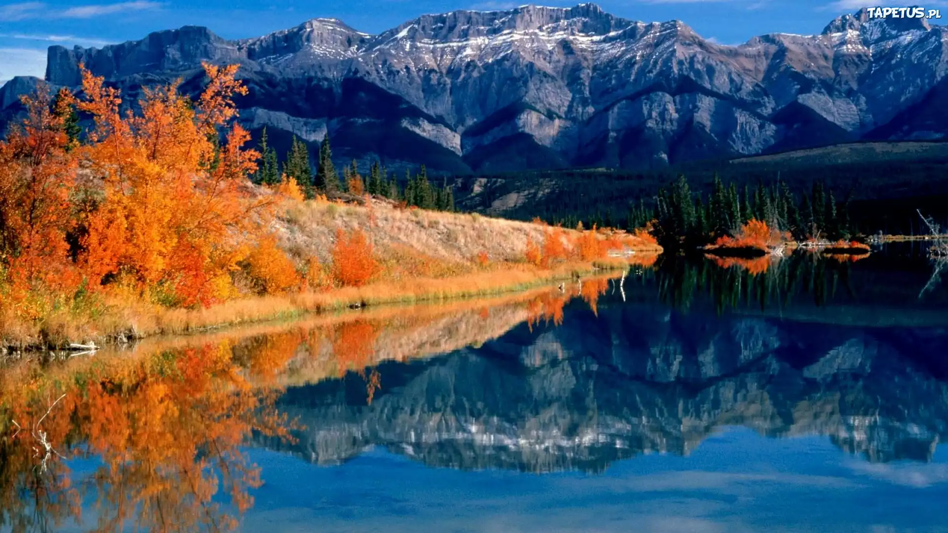 Tapeta Skały, Jezioro, Odbicie, Kolorowe, Drzewa