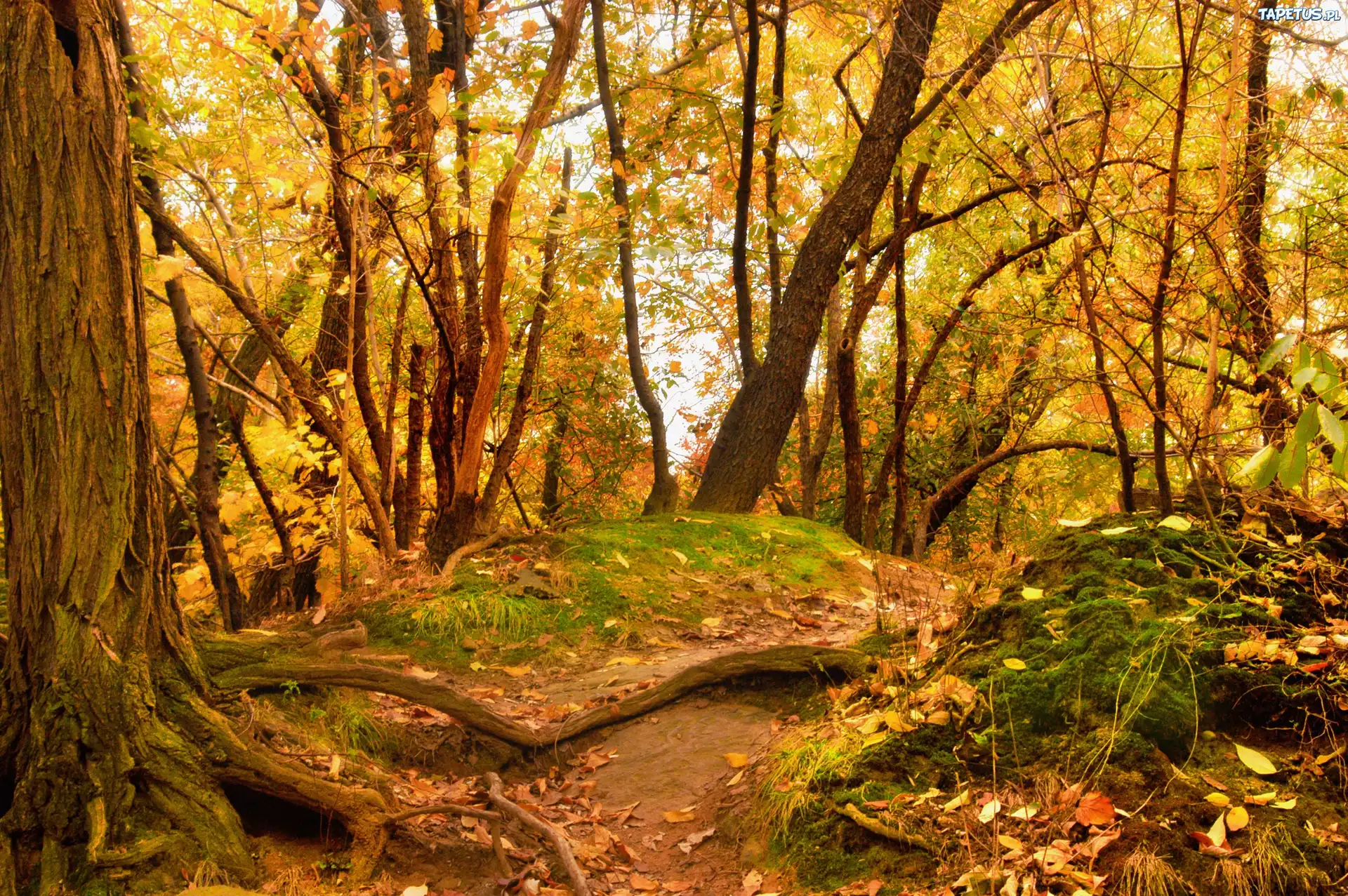 Tapeta Jesienny, Las, Opadłe, Liście, Mchy