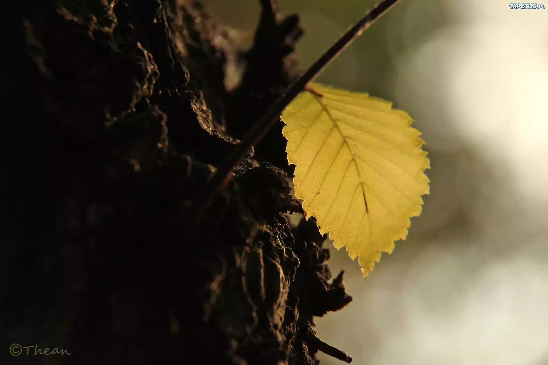 Tapeta Żółty, Jesienny, Liść, Kora, Drzewo