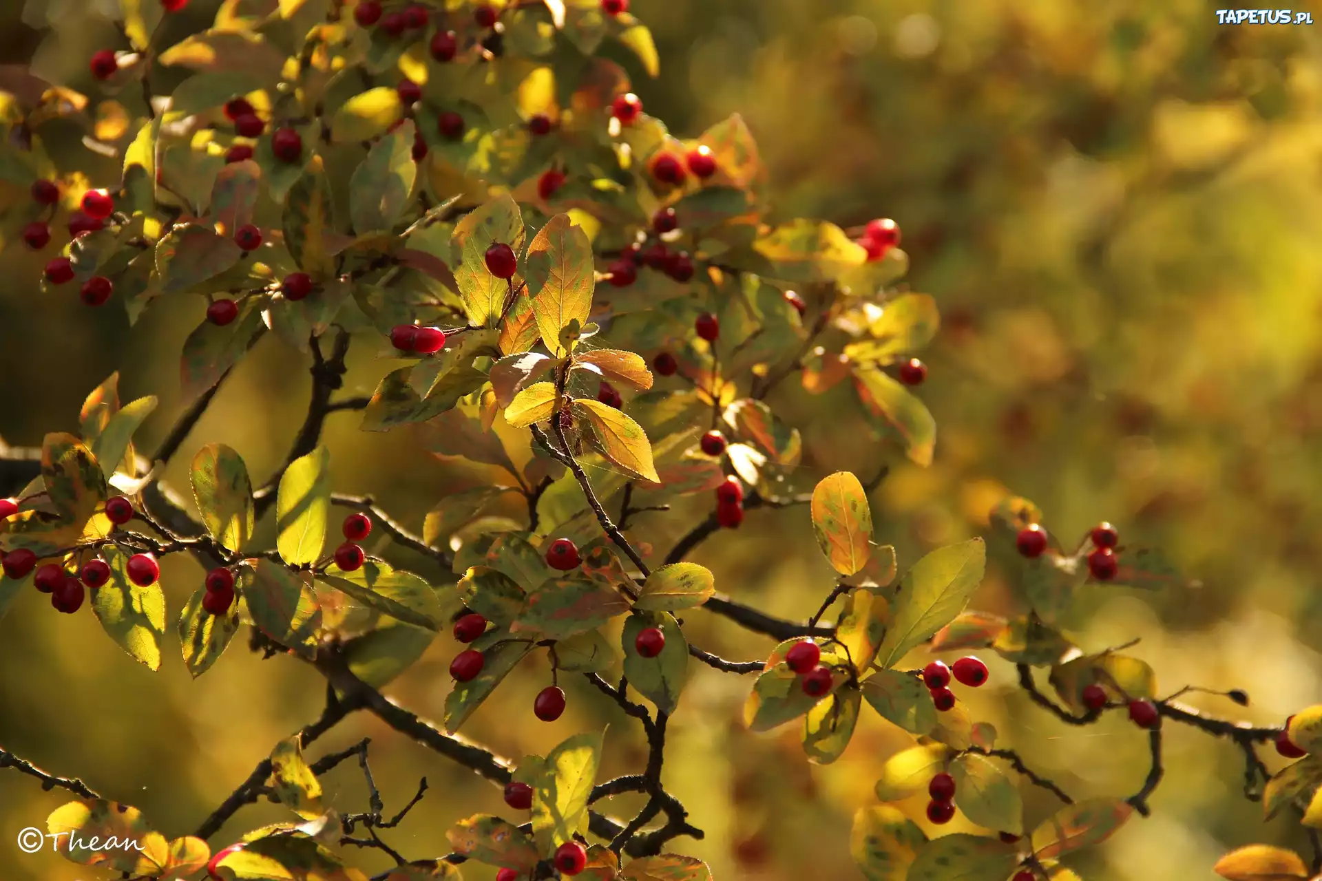 Tapeta Drzewo, Liście, Czerwone, Owoce, Jagody, Jesień