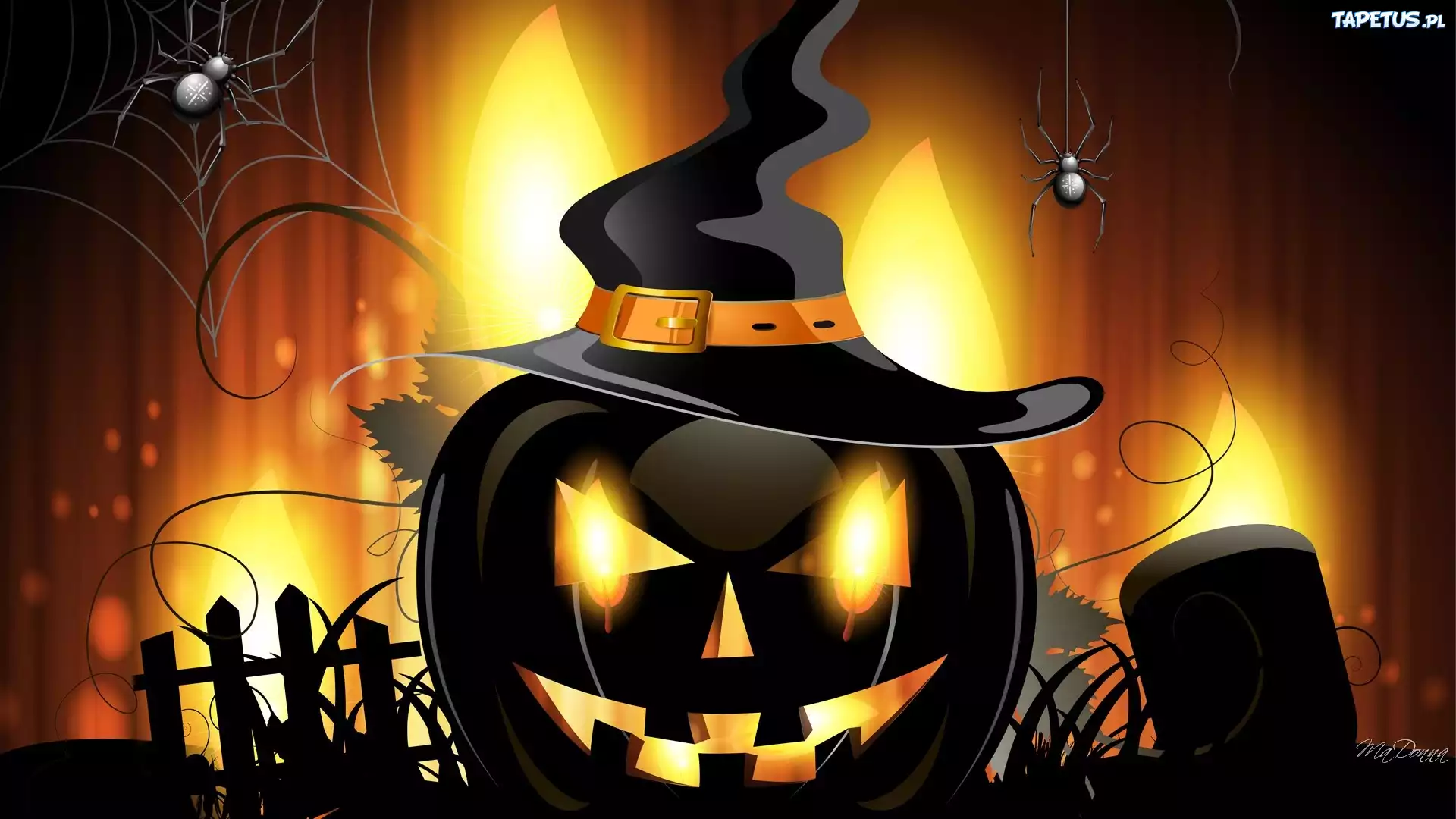 Tapeta Dynia, Ogień, Czapka, Pasek, Pająk