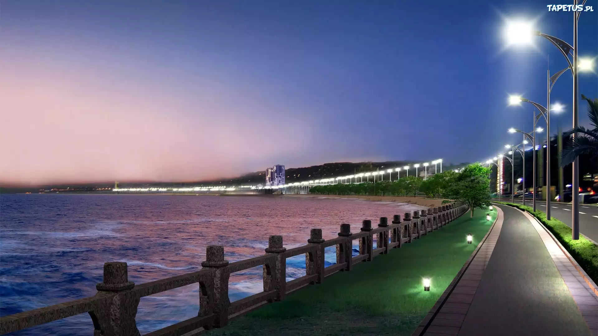 Tapeta Morze, Droga, Lampy