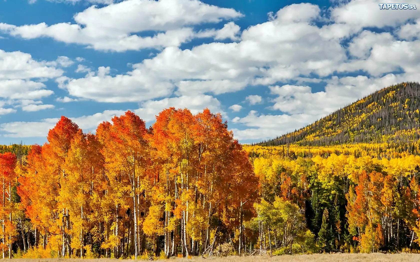 Tapeta Jesienny, Las, Wzgórza, Obłoki