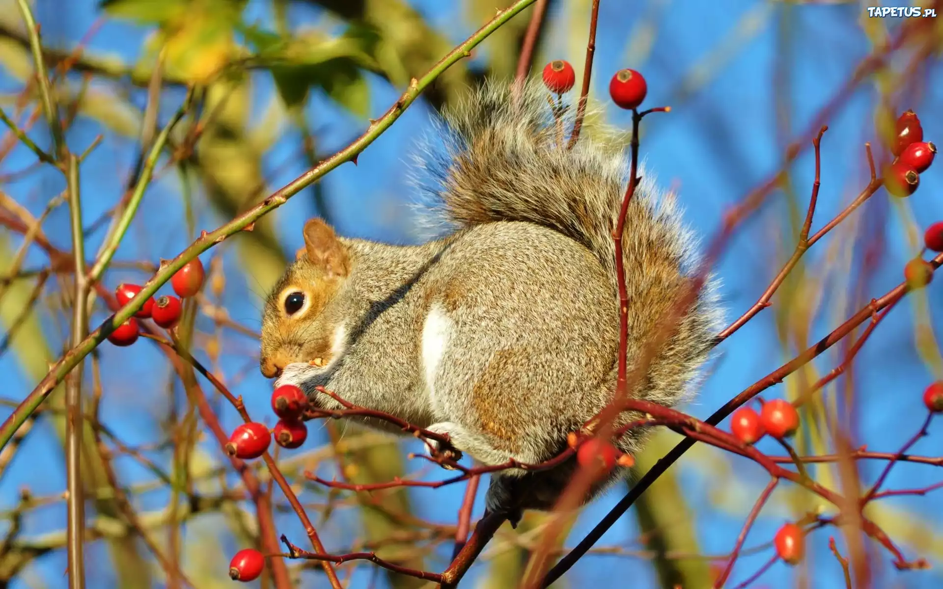 Tapeta Wiewiórka, Gałązki, Owoce, Głogu