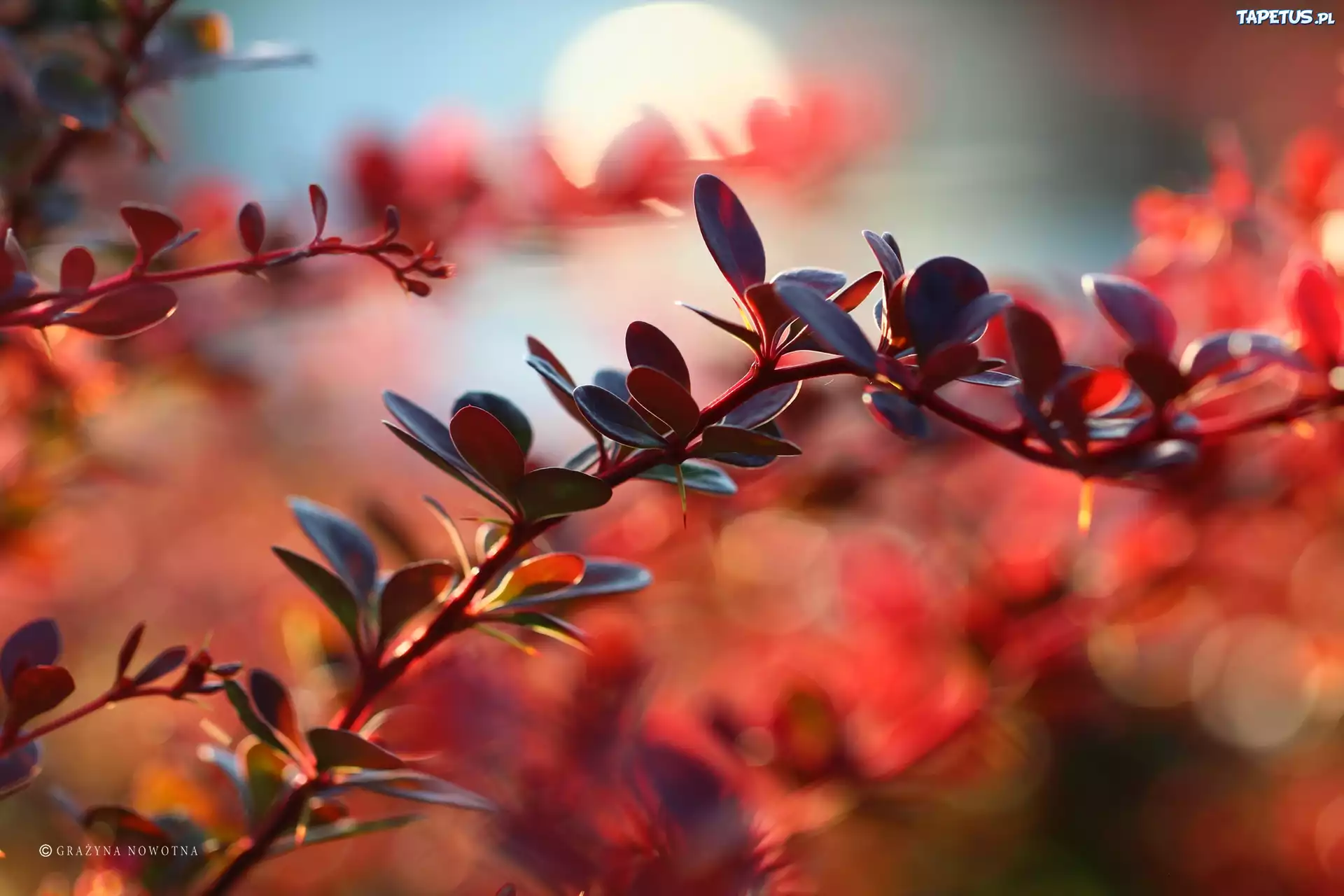 Tapeta Berberys Thunberga, Krzew, Czerwone, Liście