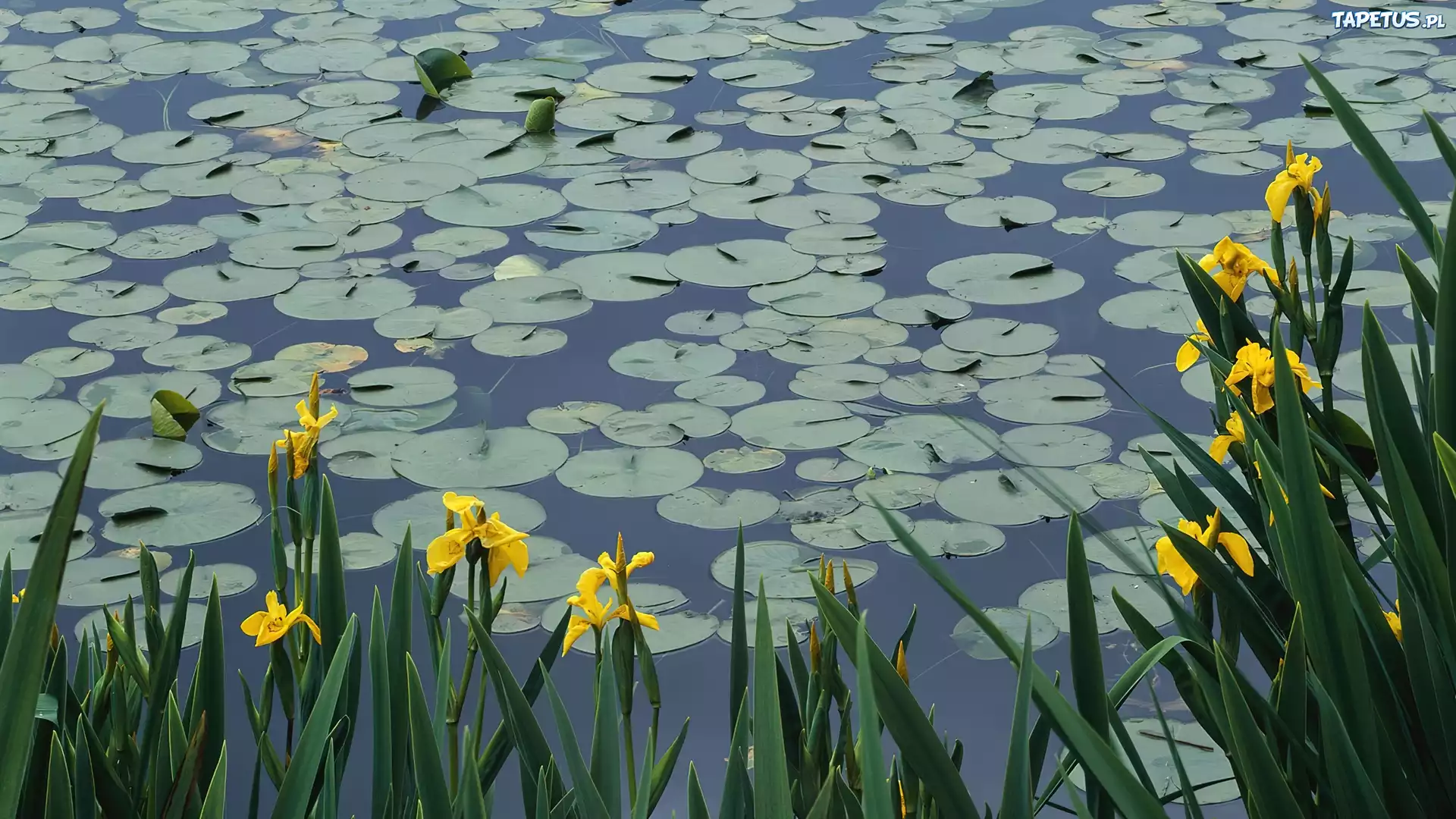 Tapeta Staw, Rzęsa, Wodna, Żółte, Irysy