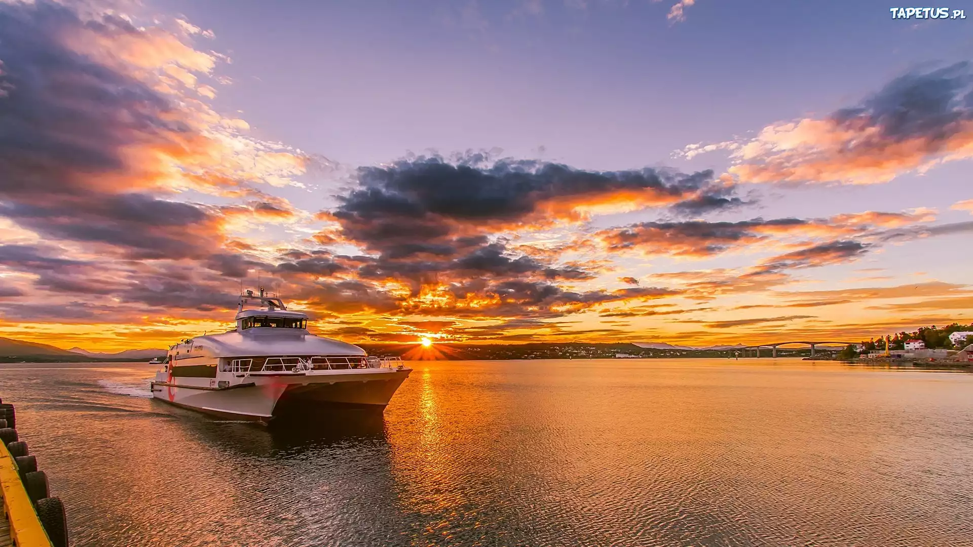 Tapeta Katamaran, Morze, Zachód Słońca