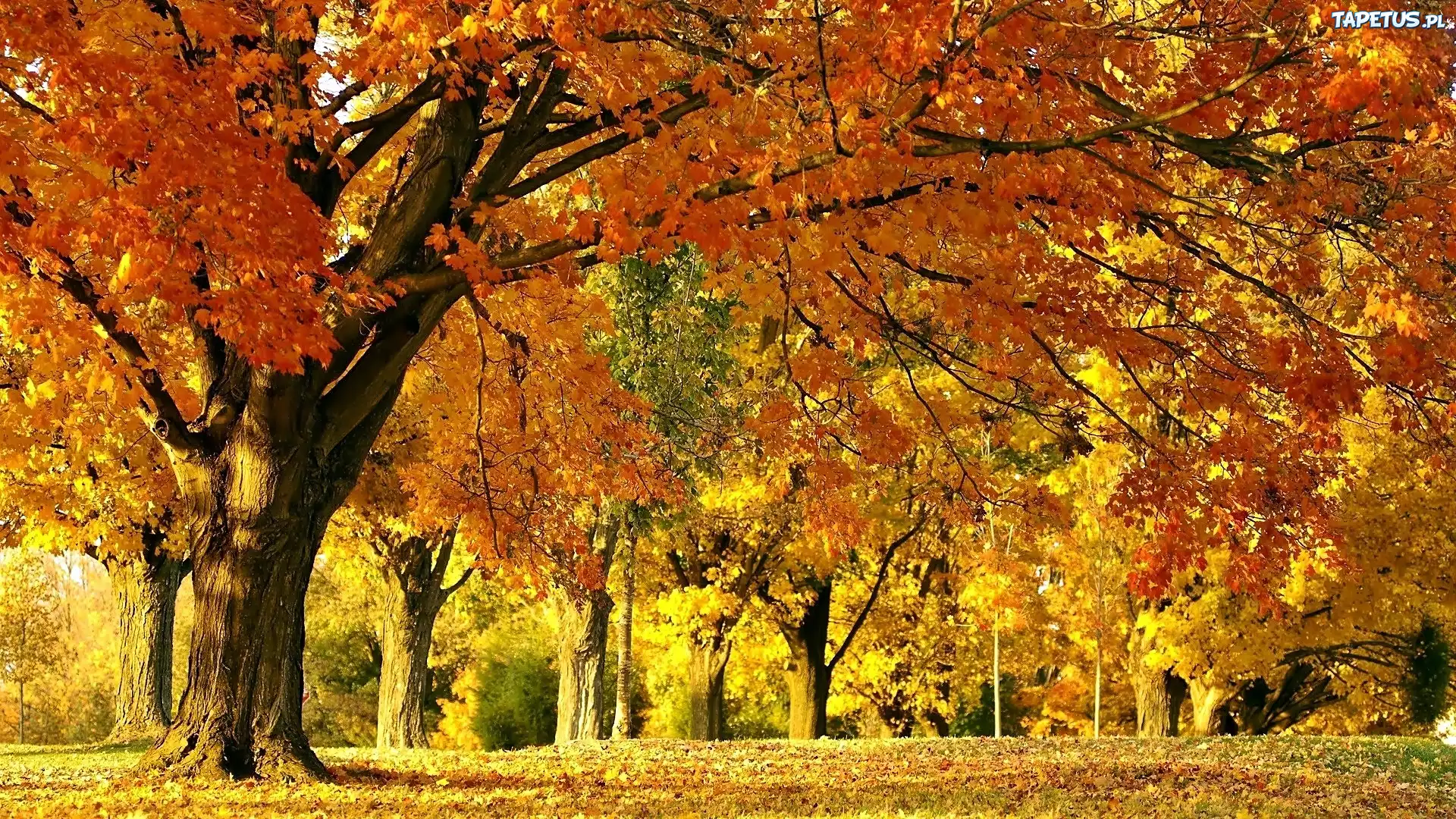 Tapeta Jesień, Park, Opadłe, Liście, Przebijające, Światło