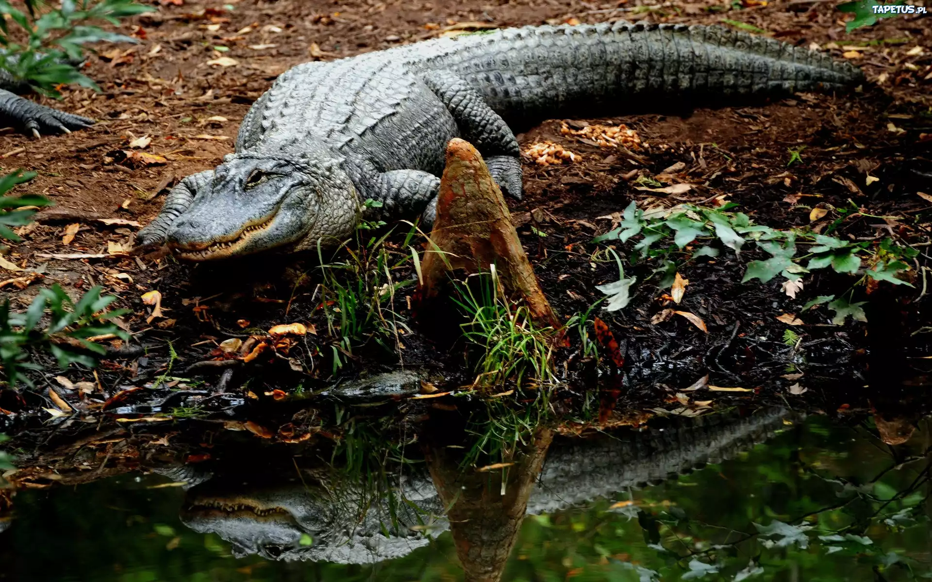 Tapeta Krokodyl, Rośliny, Woda, Odbicie