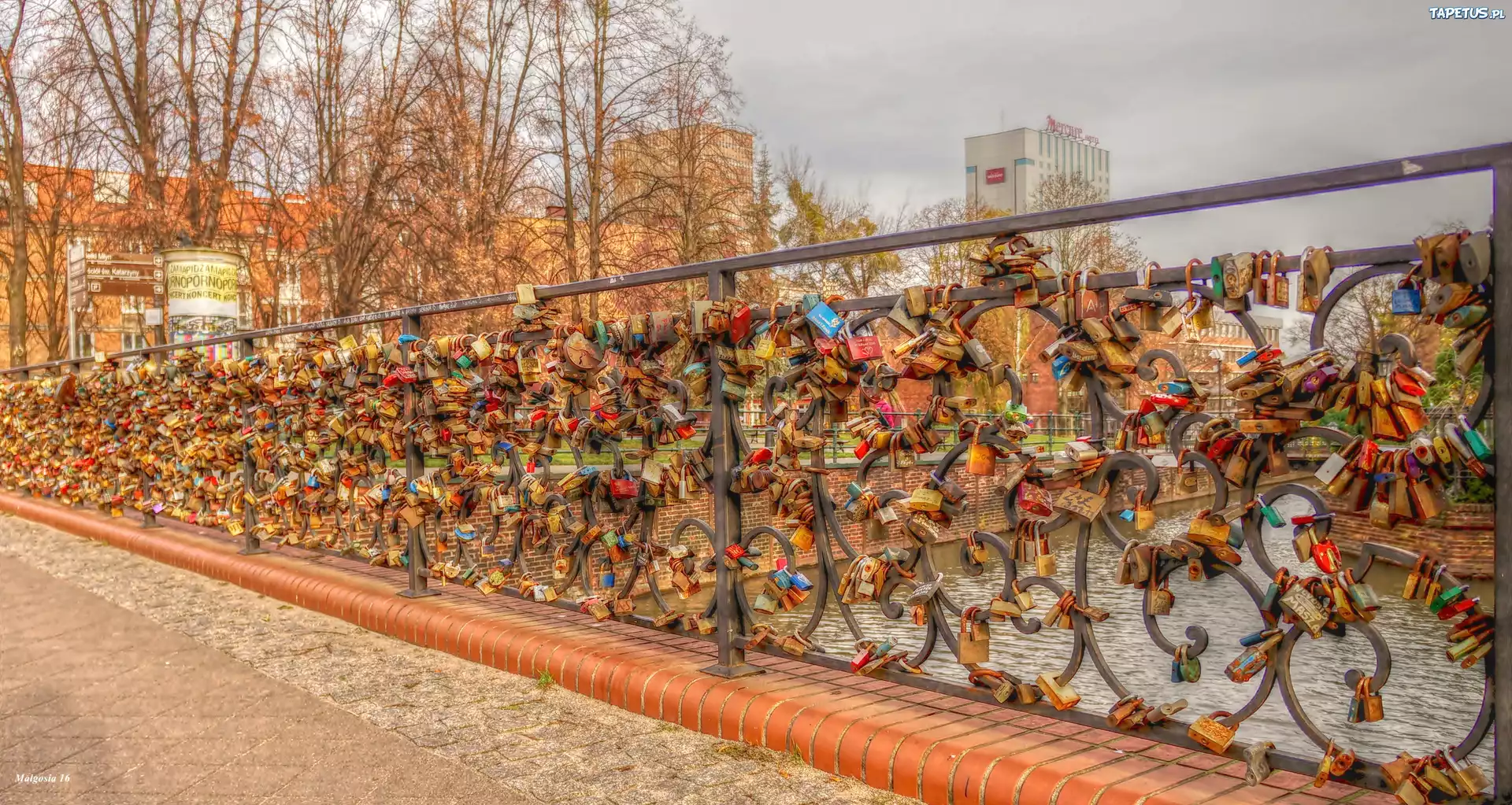Tapeta Gdańsk, Most Miłości, Balustrada, Kłódki, HDR