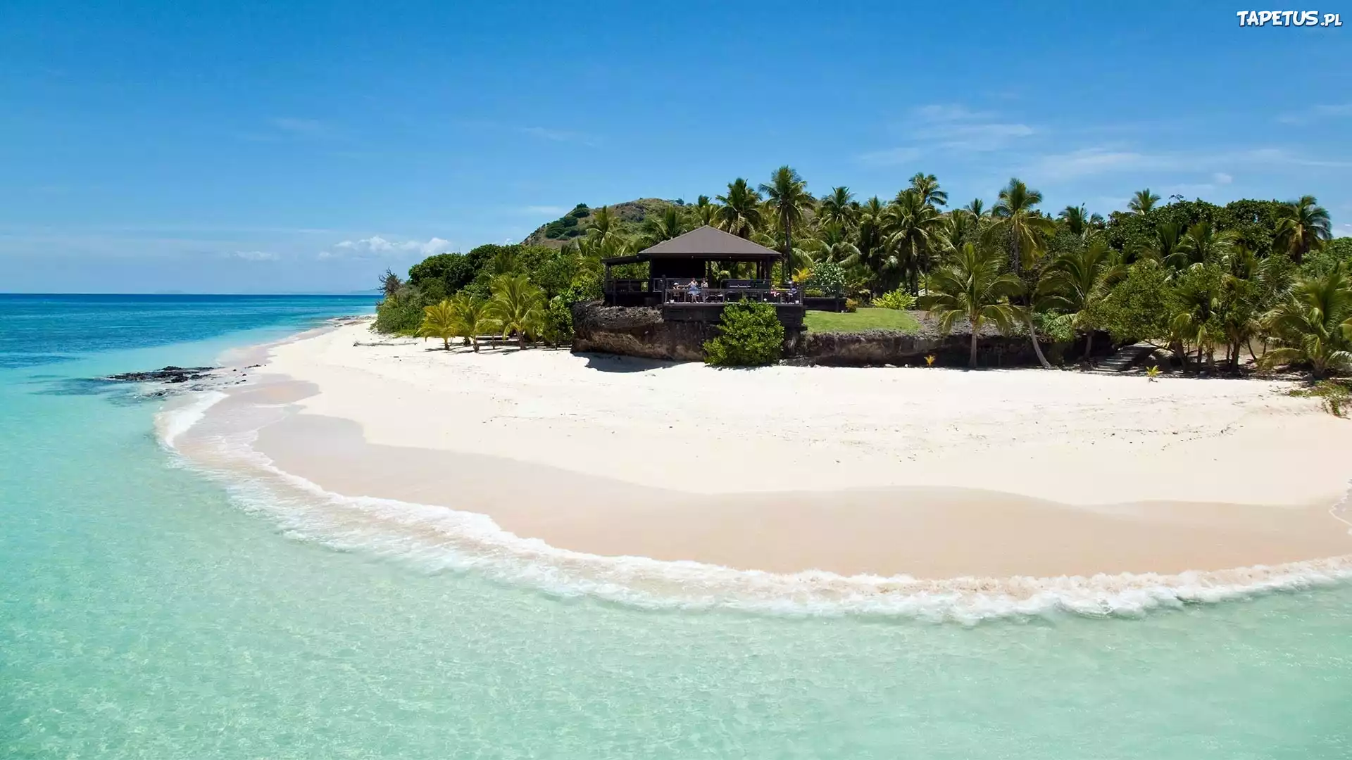 Tapeta Tropiki, Domek, Plażą, Palmy, Morze