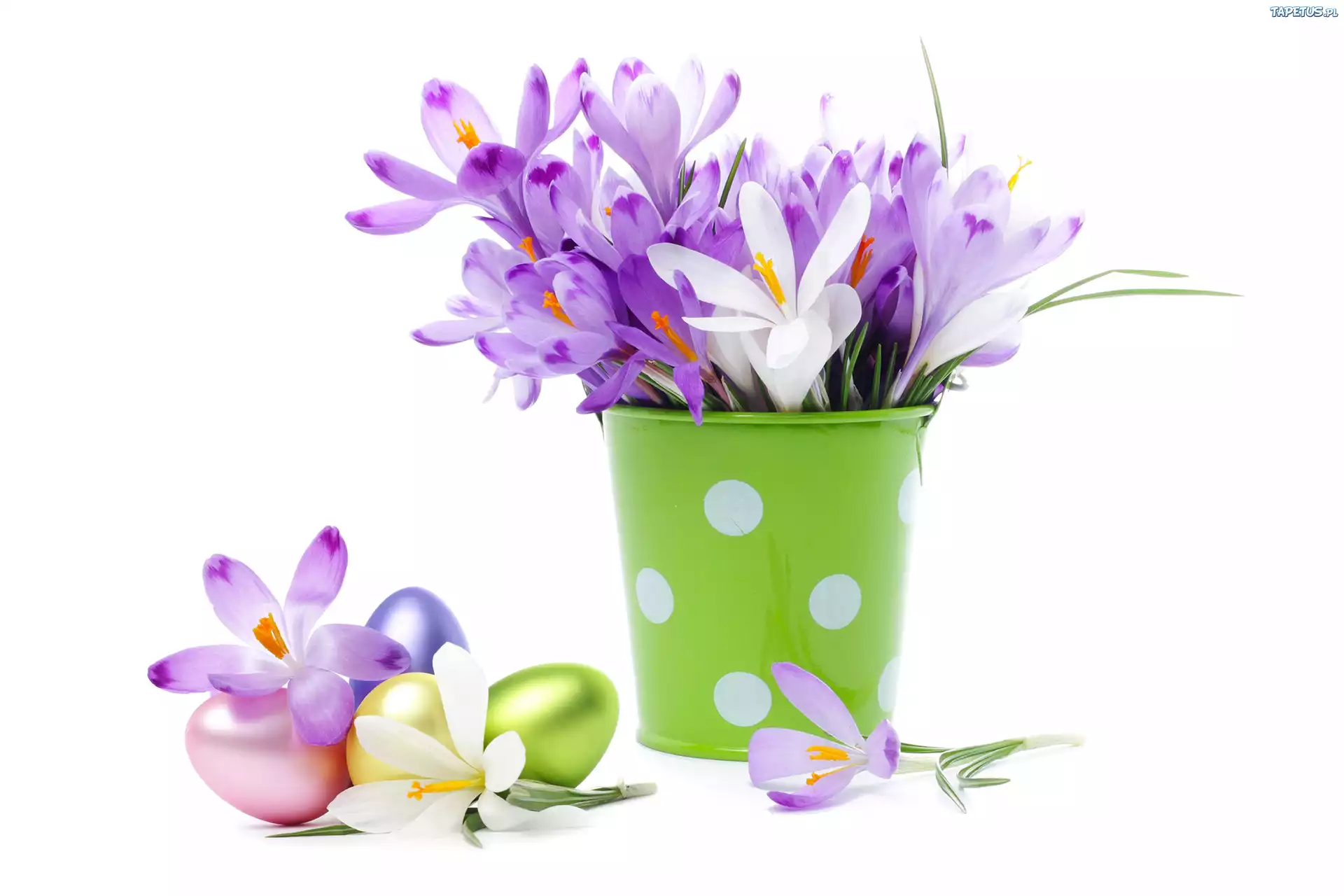 Tapeta Wazonik, Kwiaty, Jajka, Wielkanoc