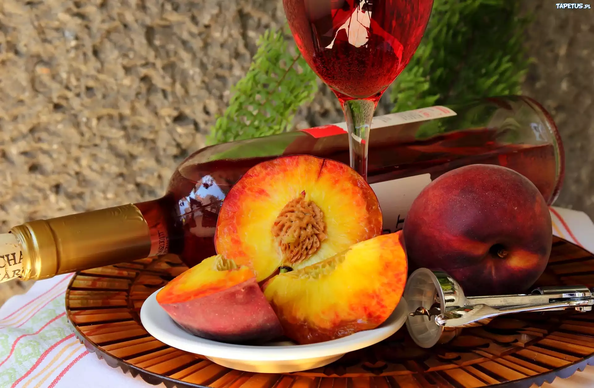Słowa Kluczowe: Brzoskwinie , Wino , Butelka , Kieliszek