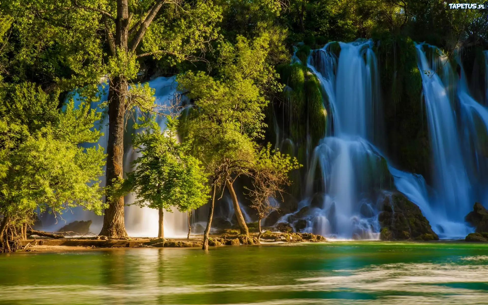 Tapeta Wodospad, Las, Rzeka, Drzewa
