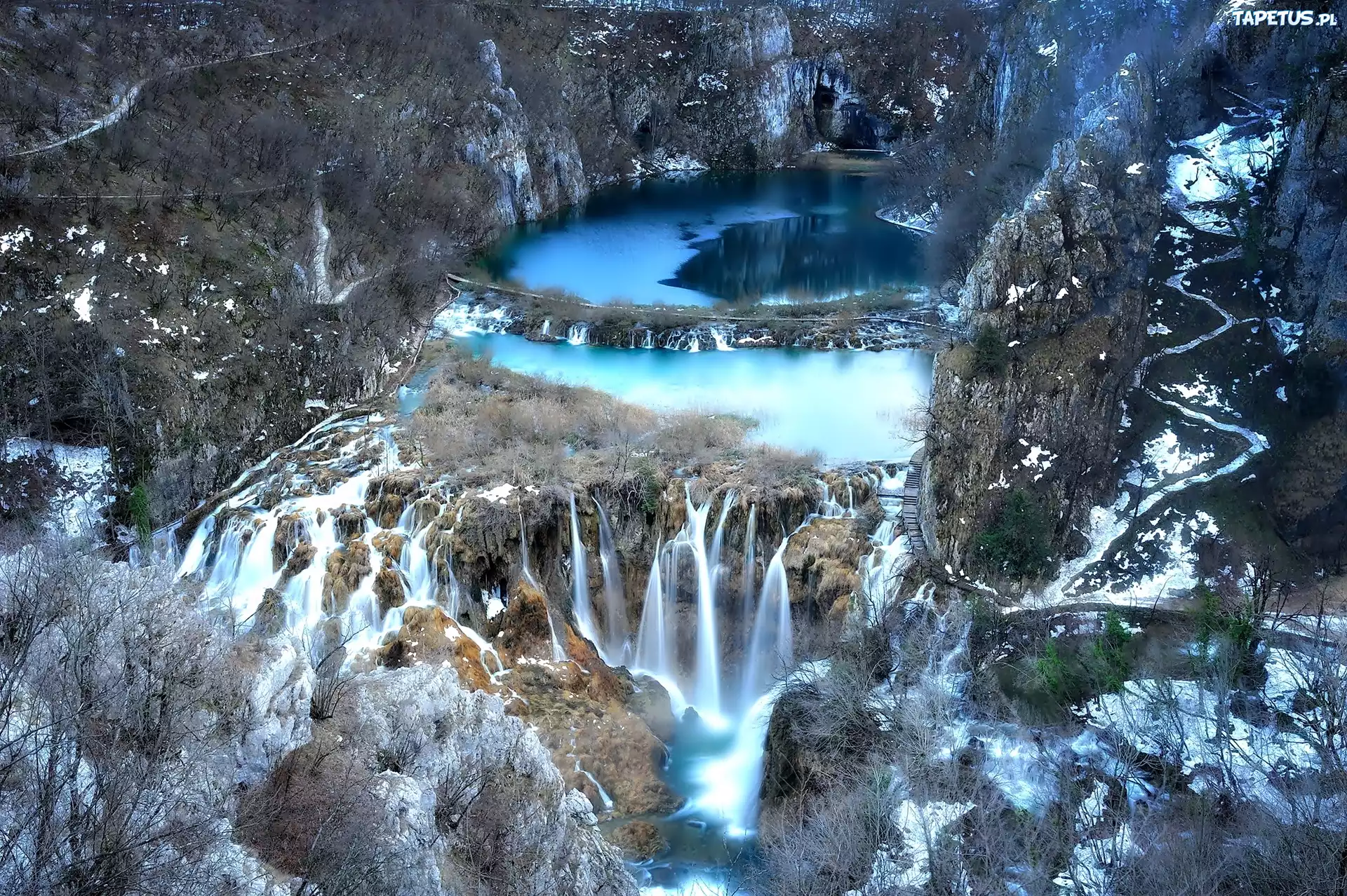 Tapeta Chorwacja, Skały, Wodospad, Park Narodowy, Plitvice, Z lotu ptaka