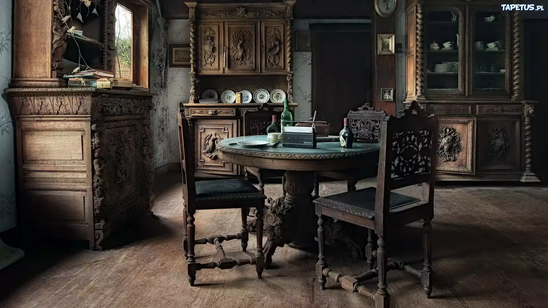Tapeta Wnętrze, Pokój, Meble, Antyki, Stół, Krzesła