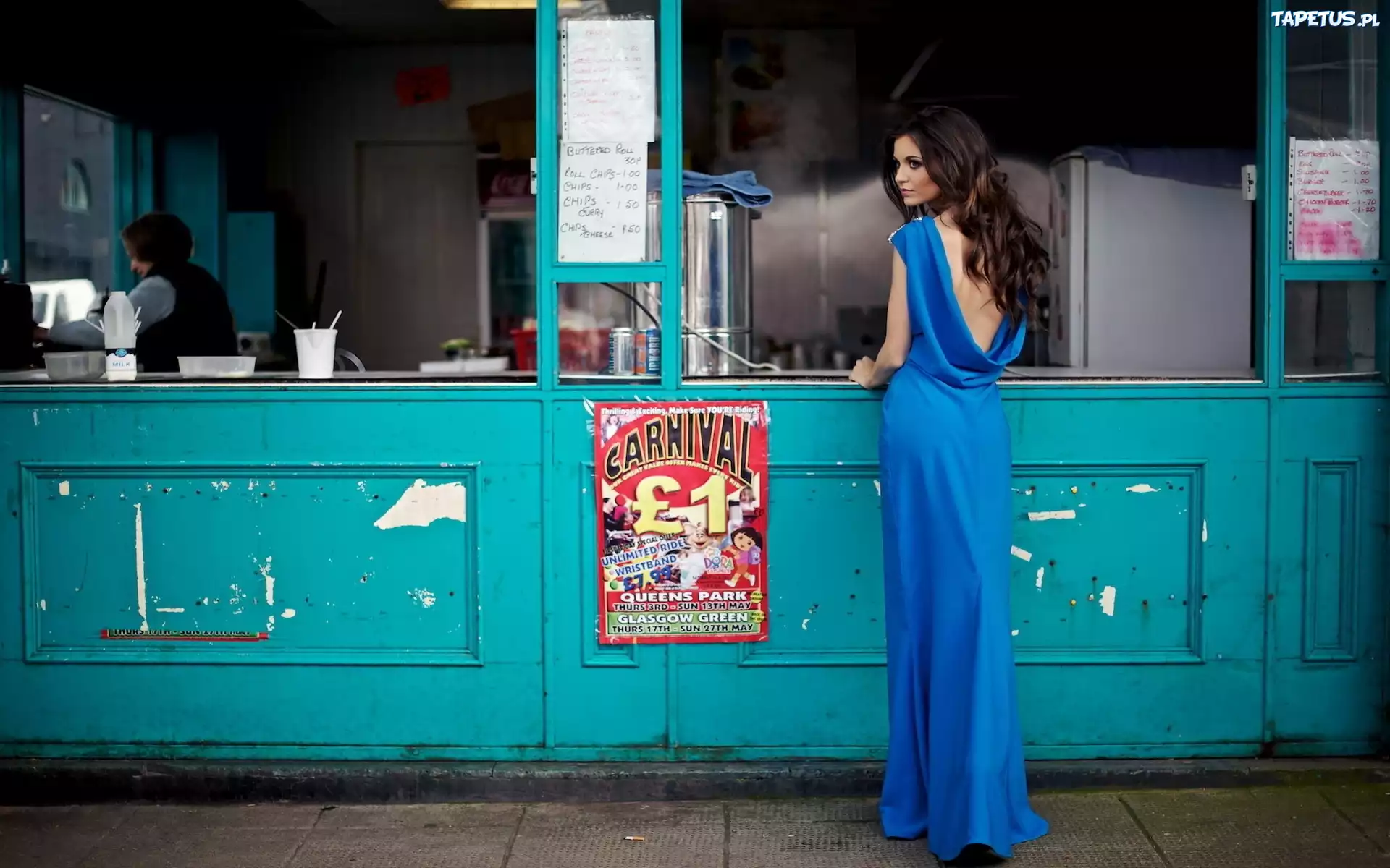 Tapeta Kobieta, Modelka, Brunetka, Długa Sukienka, Bar, Ulica