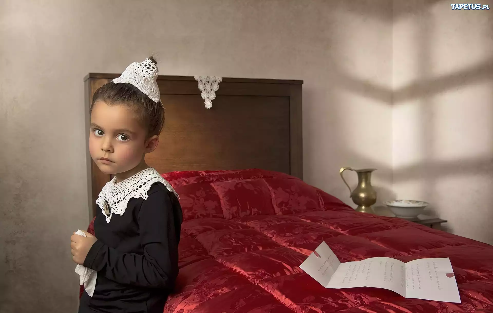 Tapeta Dziewczynka, Sypialnia, Łóżko, Koronkowy, Kołnierzyk