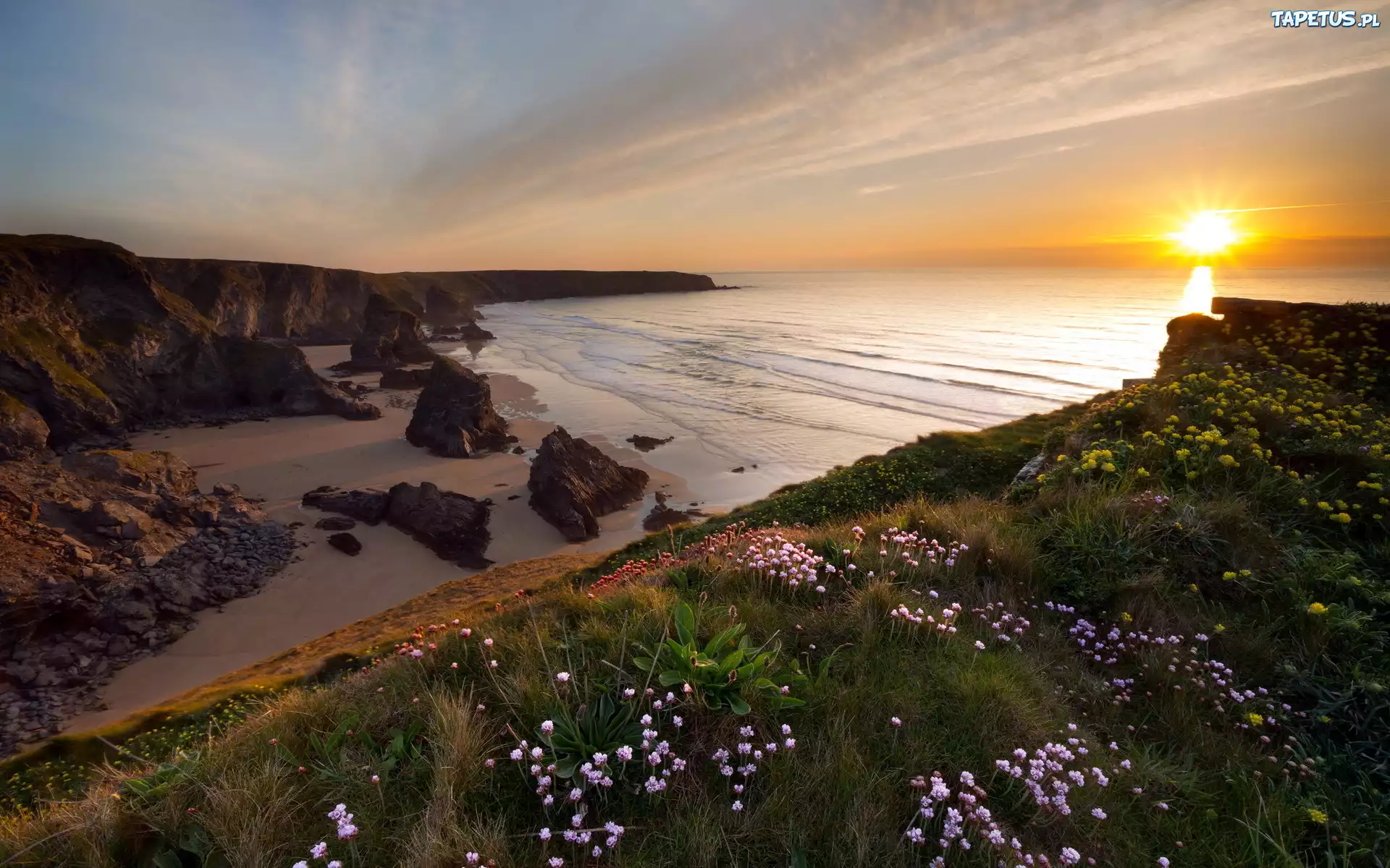 Tapeta Wybrzeże, Morze, Skały, Zachód Słońca
