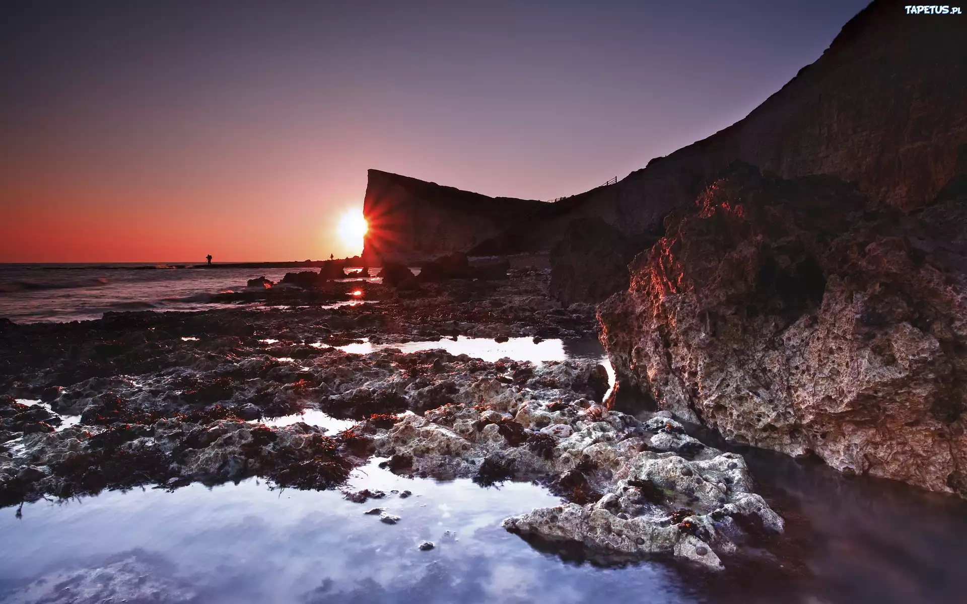 Tapeta Morze, Klif, Skały, Zachód, Słońca