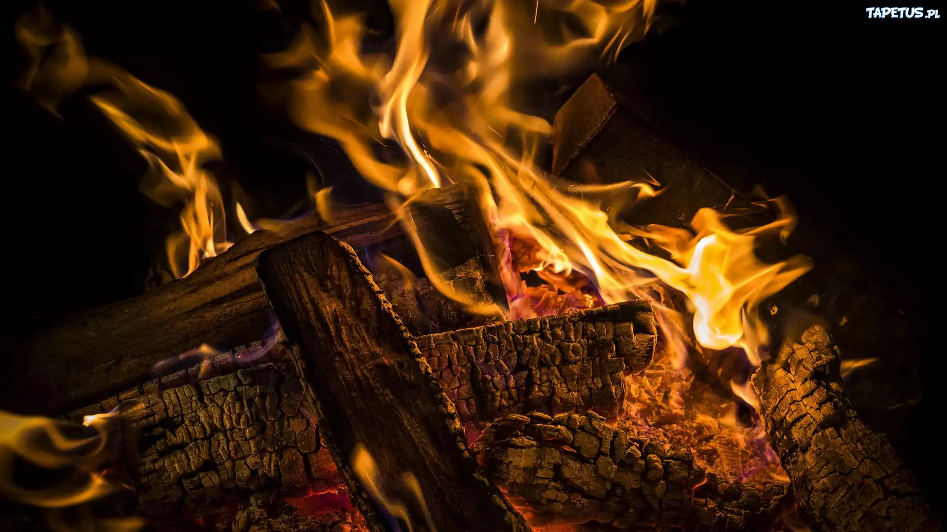 Tapeta Ogień, Płomienie, Żar, Drewno