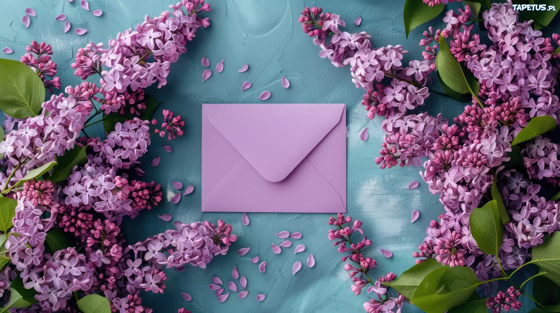 Słowa Kluczowe: Kompozycja , Gałązki , Bez , Płatki , Fioletowa , Koperta
