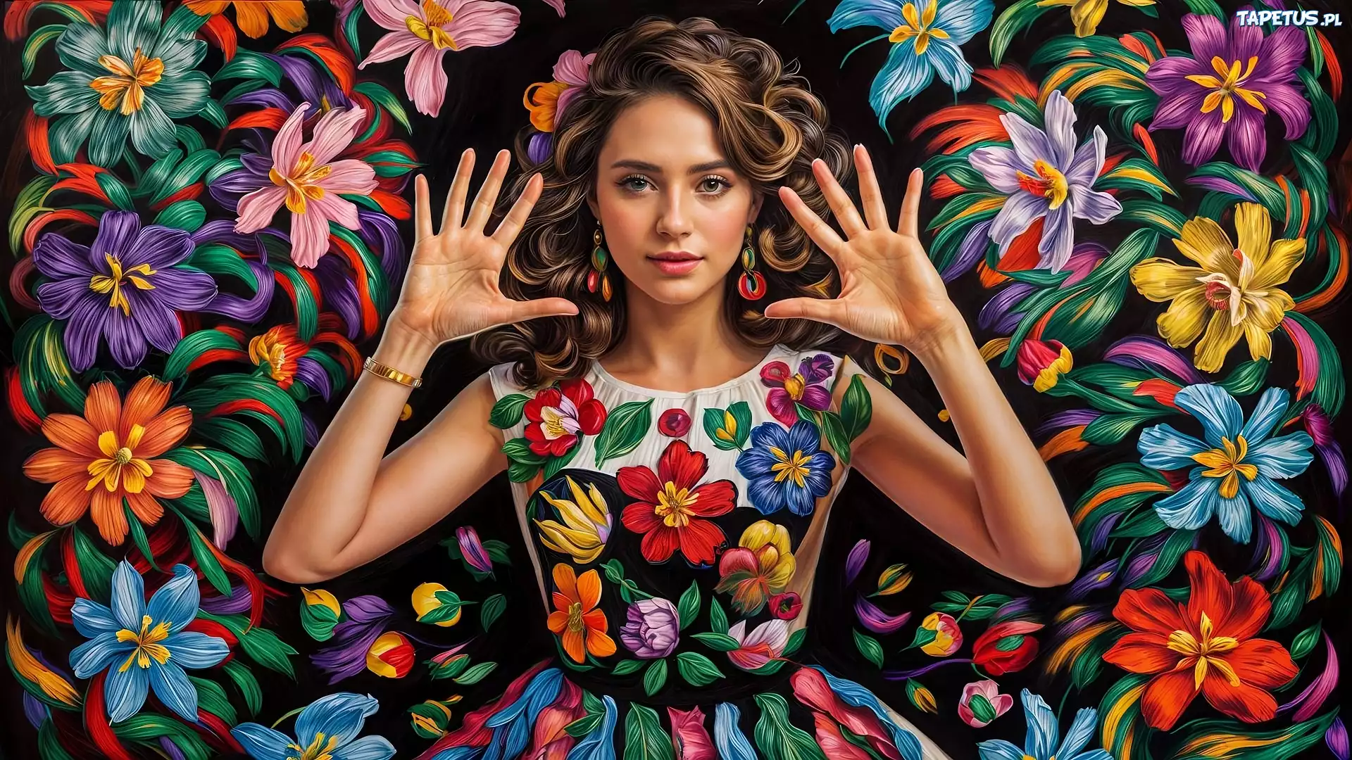 Tapeta Kobieta, Grafika, Kwiaty, Kolory