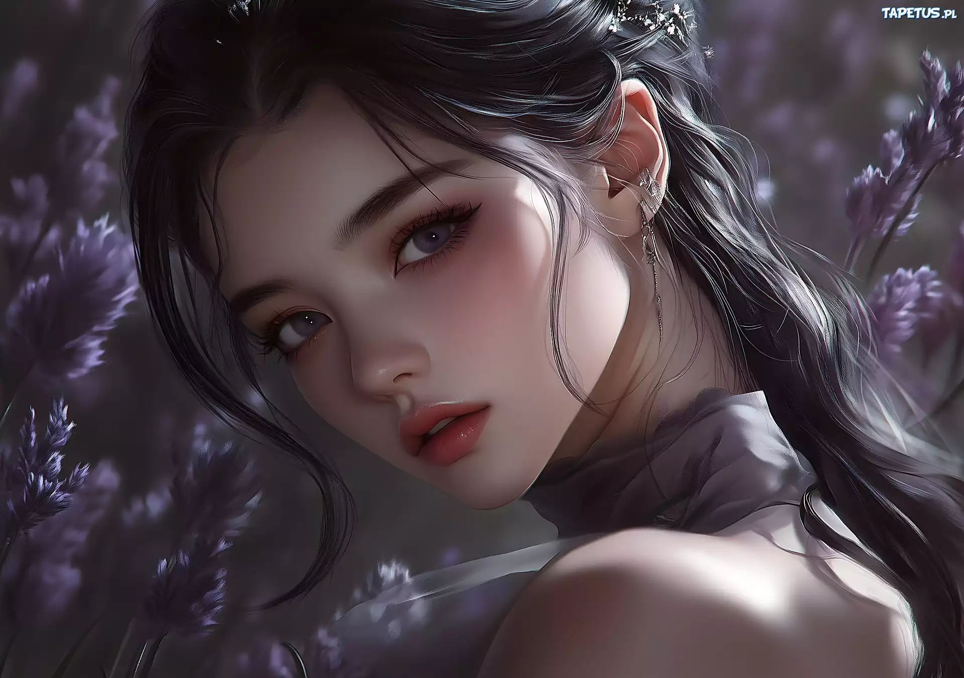 Tapeta Kobieta, Kolczyk, Spojrzenie, Grafika