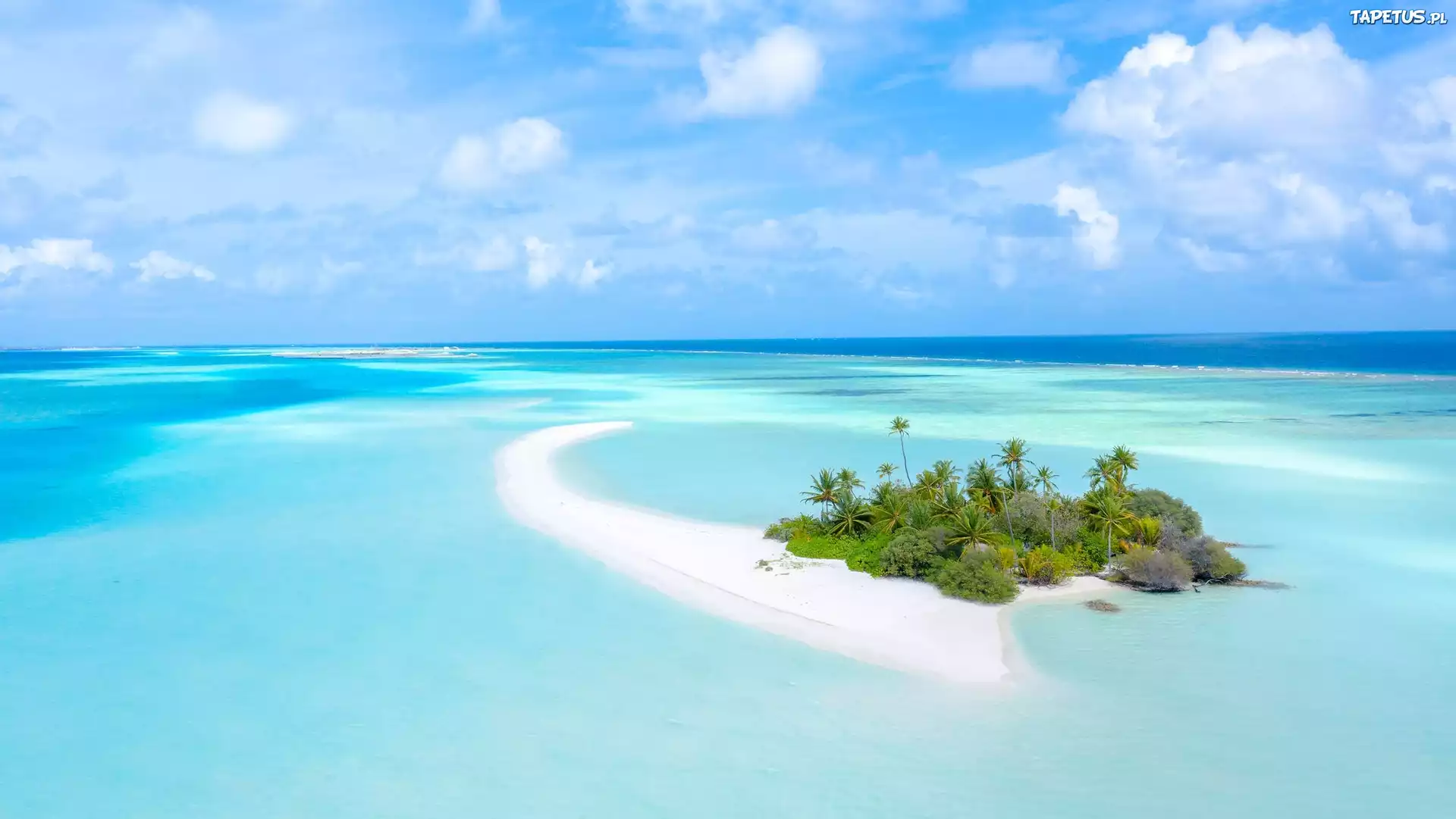 Tapeta Malediwy, Morze, Wyspa, Palmy, Z lotu ptaka