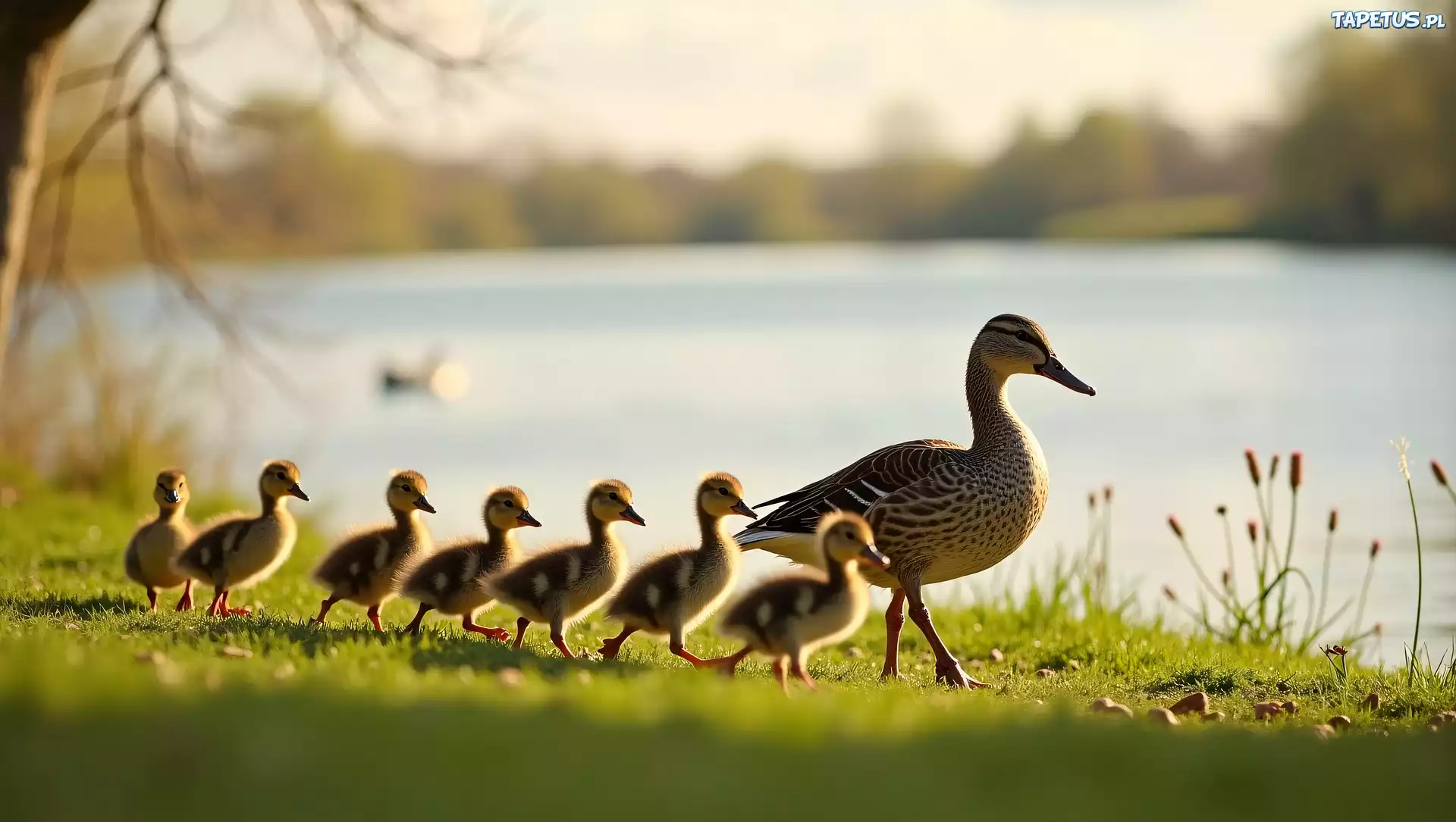 Tapeta Kaczki, Kaczuszki, Spacer, Staw, Grafika