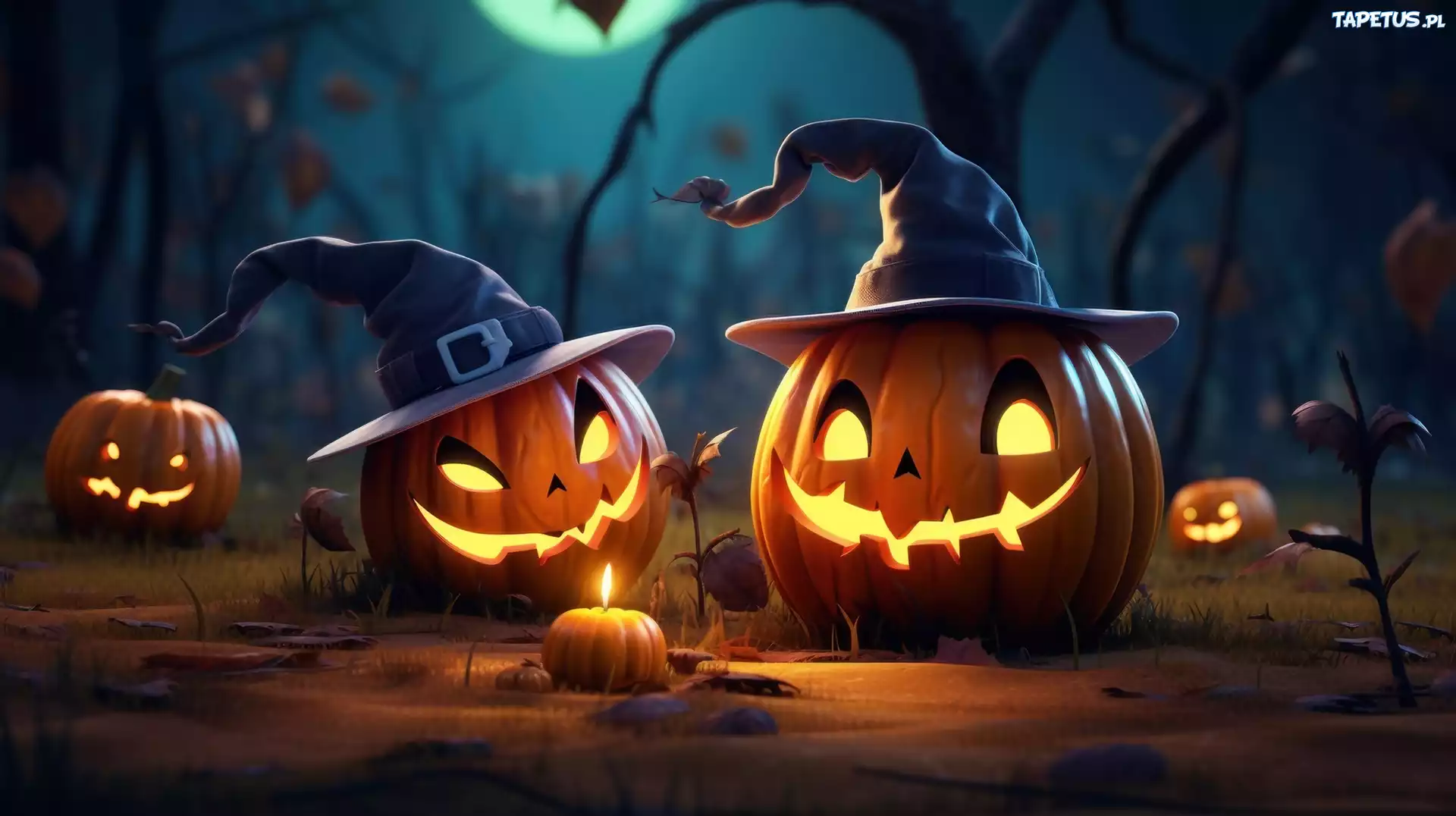 Tapeta Dynie, Kapelusze, Halloween, Grafika