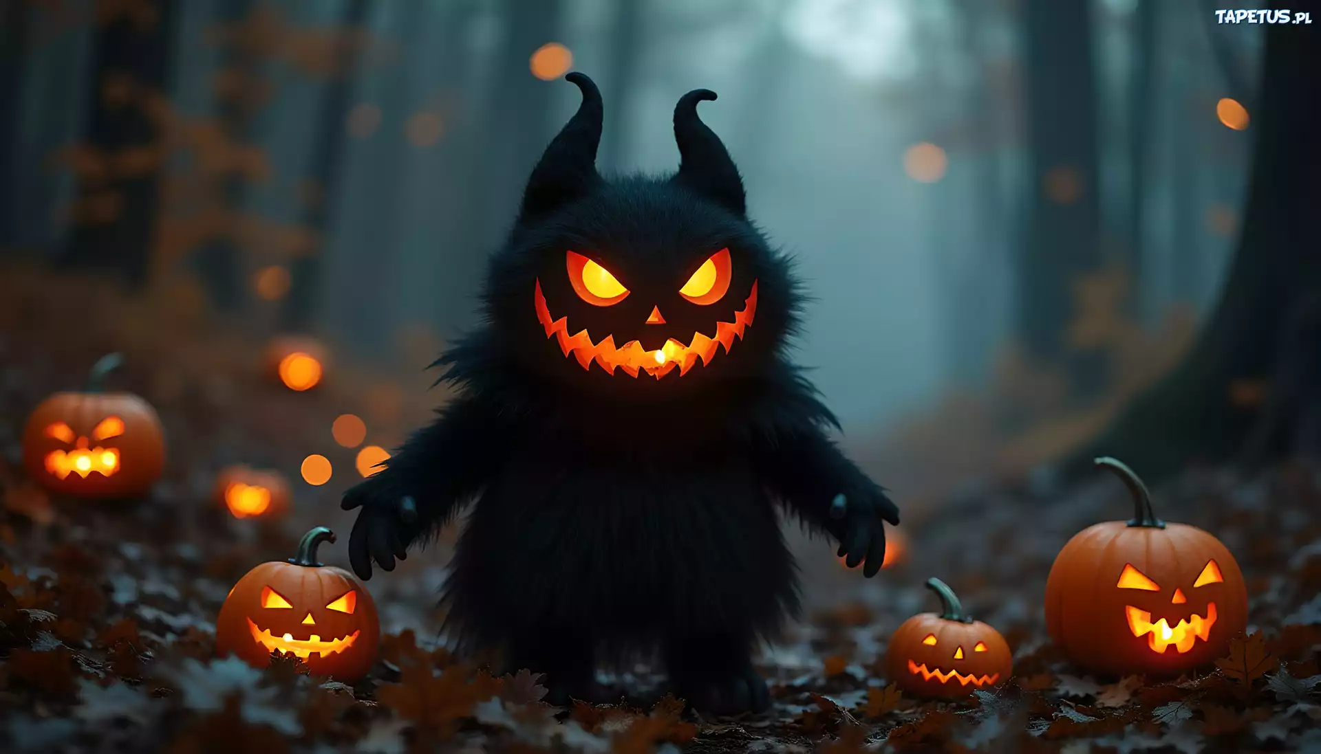 Tapeta Włochaty, Stwór, Grafika, Dynie, Halloween