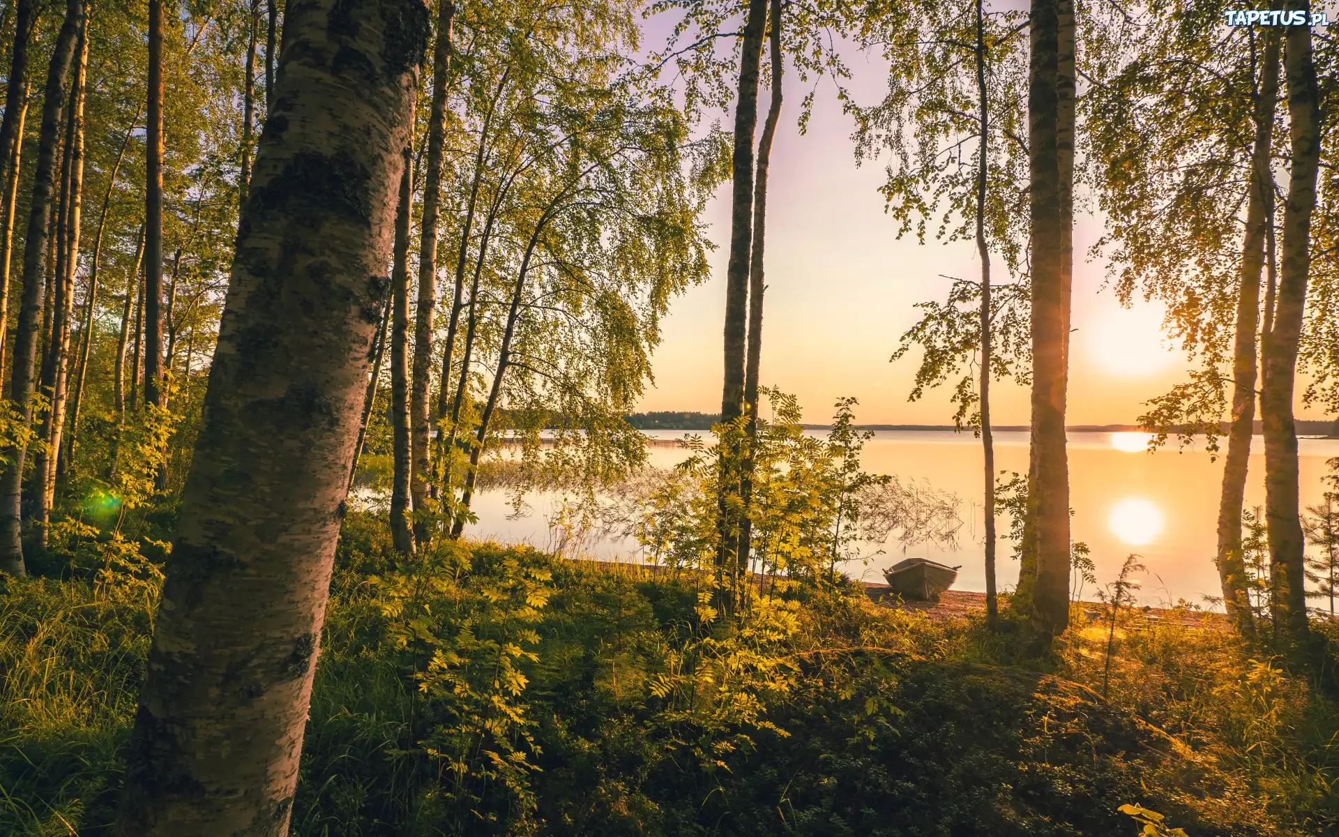Tapeta Jezioro, Drzewa, Łódka