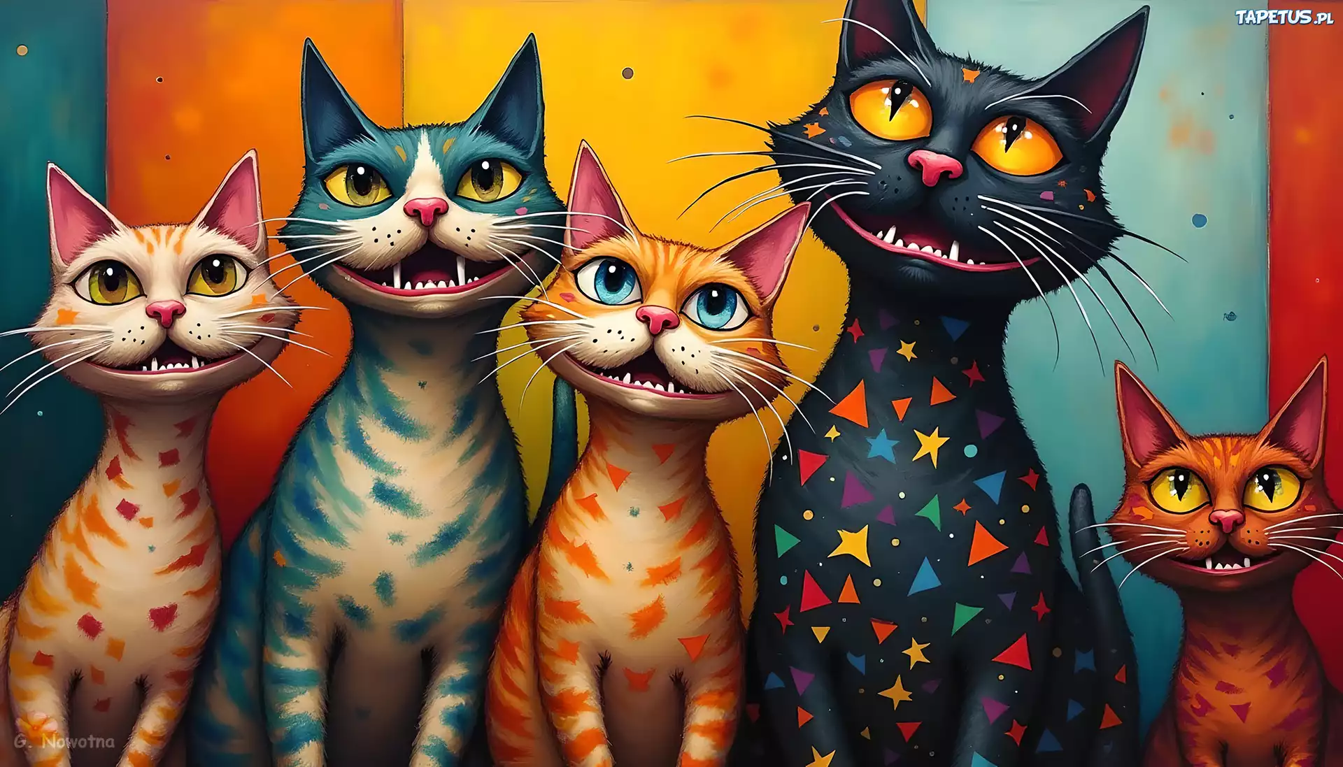 Słowa Kluczowe: Pięć , Kolorowych , Kotów , Koty , Grafika