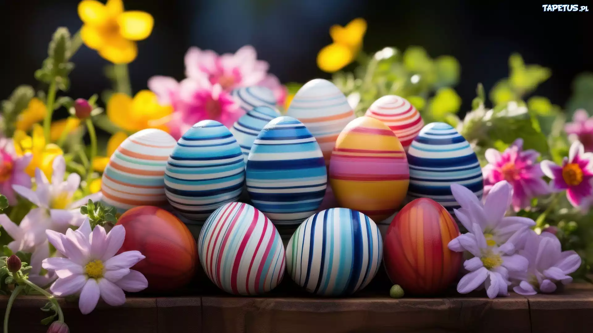 Tapeta Kolorowe, Pisanki, Grafika, Kwiaty, Wielkanoc