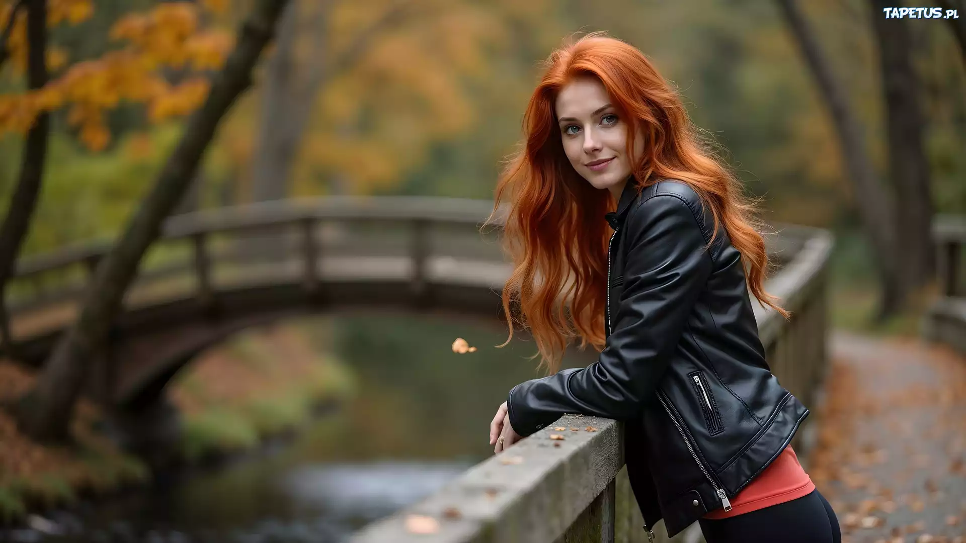 Tapeta Kobieta, Rude, Włosy, Skórzana, Kurtka