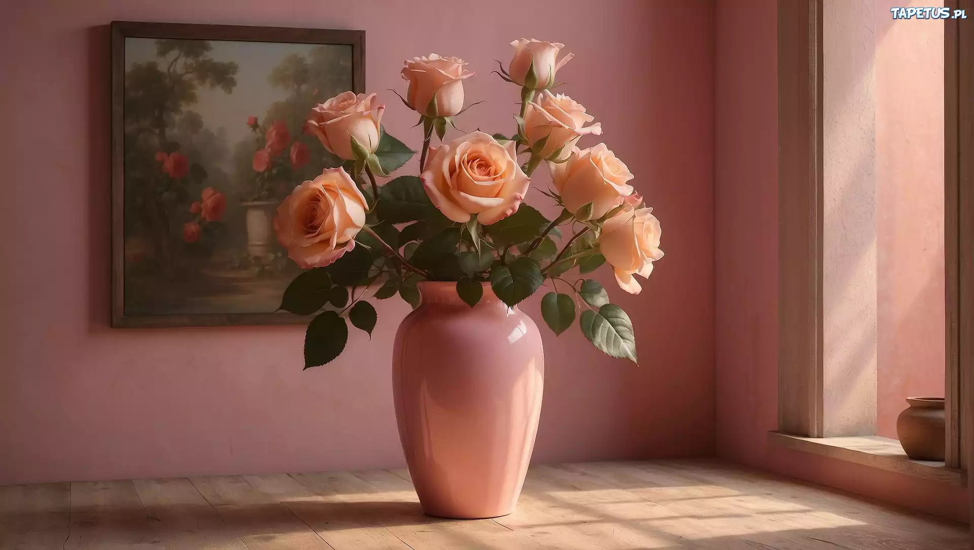 Słowa Kluczowe: Róże , Wazon , Obraz , Okno