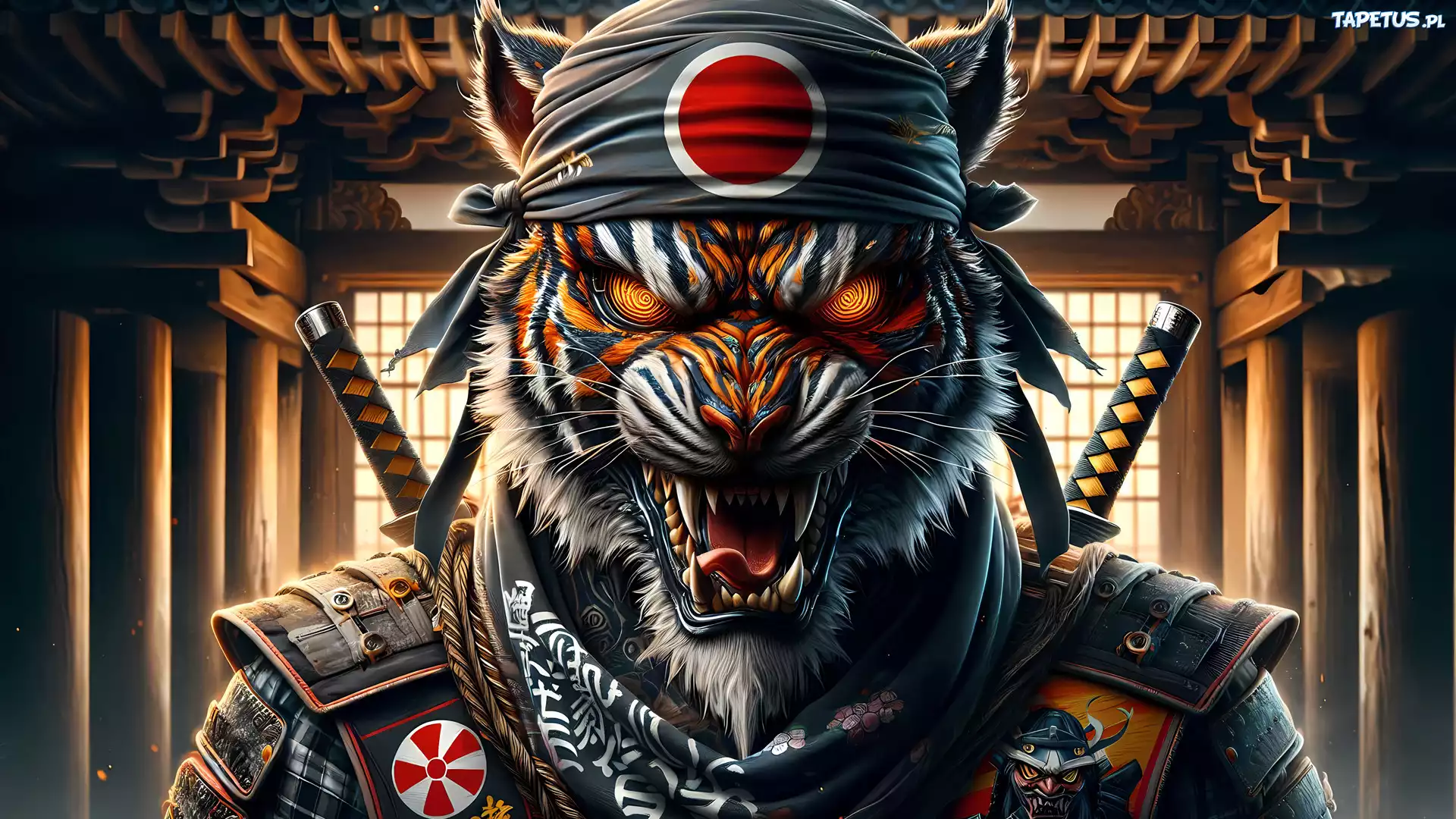Tapeta Samuraj, Tygrys, Bandana, Fantasy