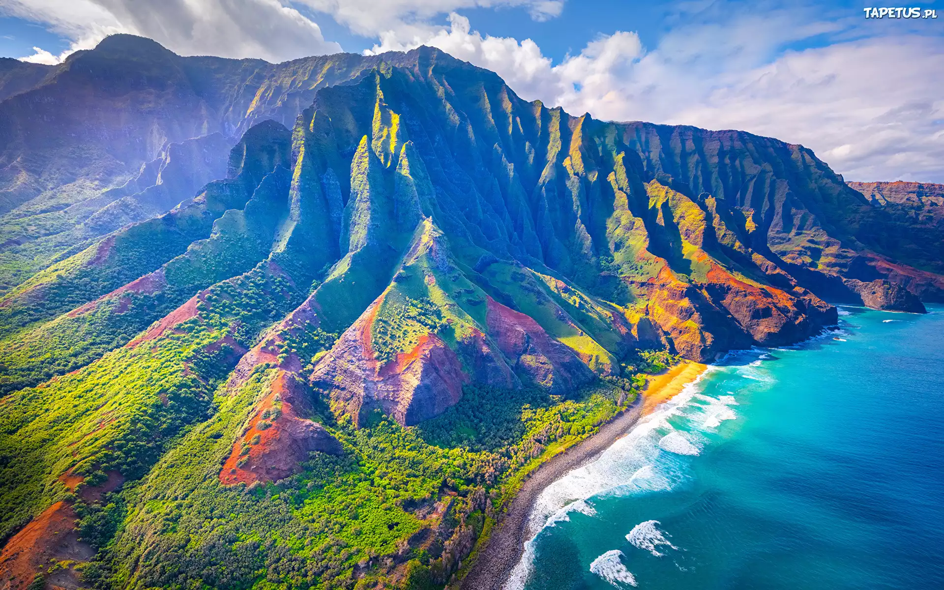Tapeta Stany Zjednoczone, Hawaje, Wyspa Kauai, Góry, Roślinność, Morze