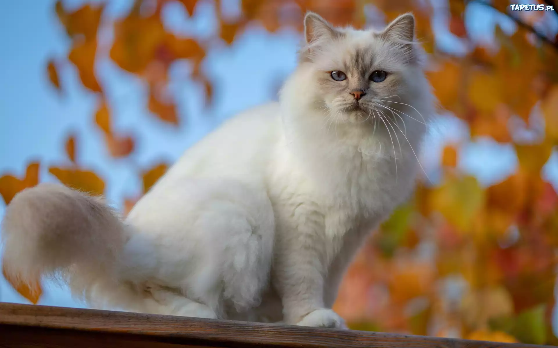 Tapeta Siedzący, Biały, Kot, Niebieskie, Oczy