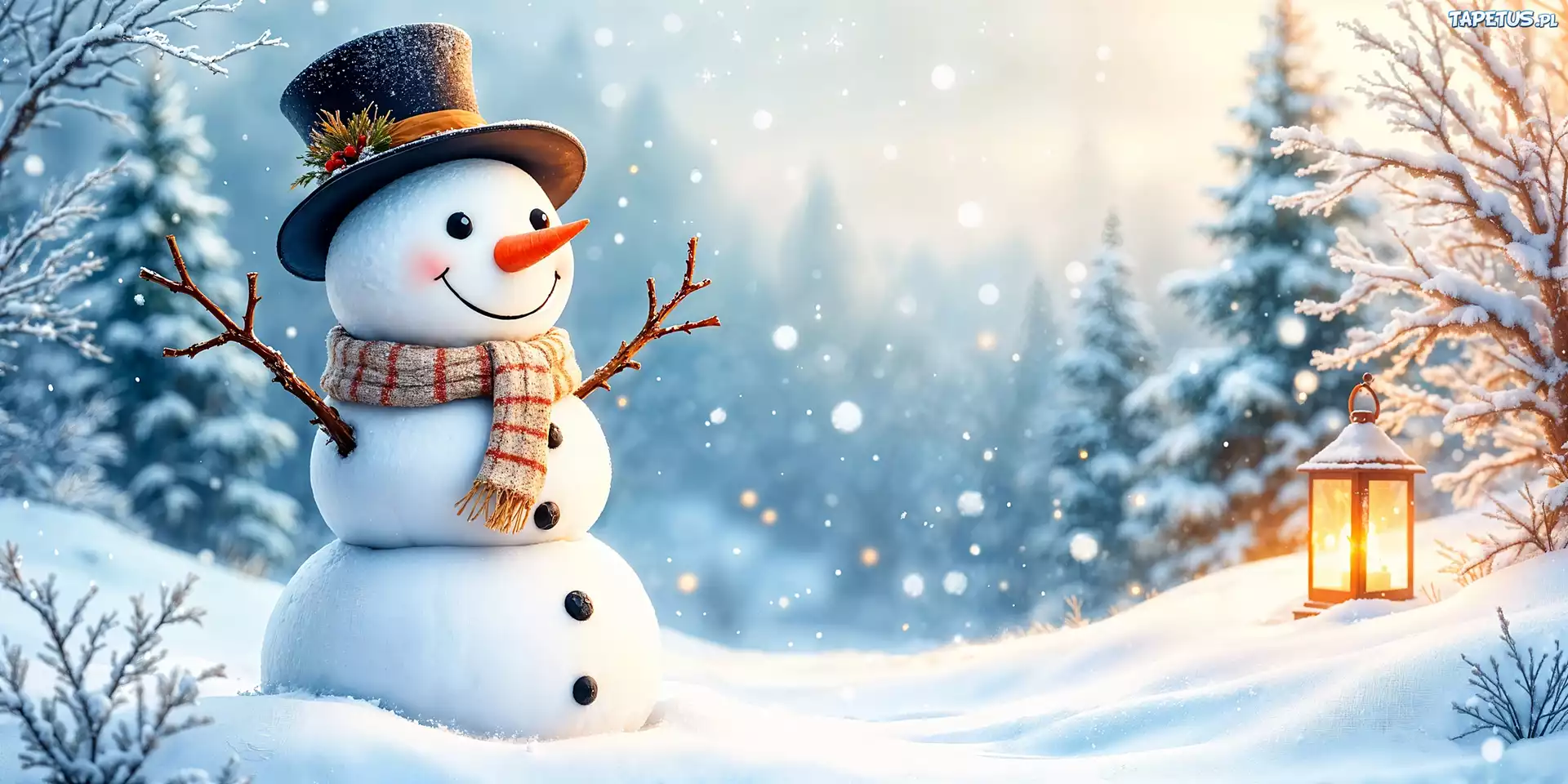Tapeta Zima, Bałwan, Lampion, Grafika