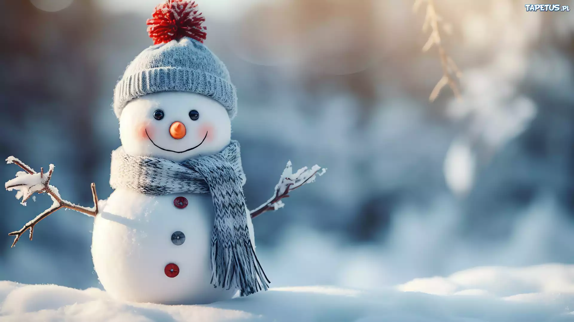 Tapeta Bałwanek, Uśmiech, Czapka, Szalik, Grafika AI