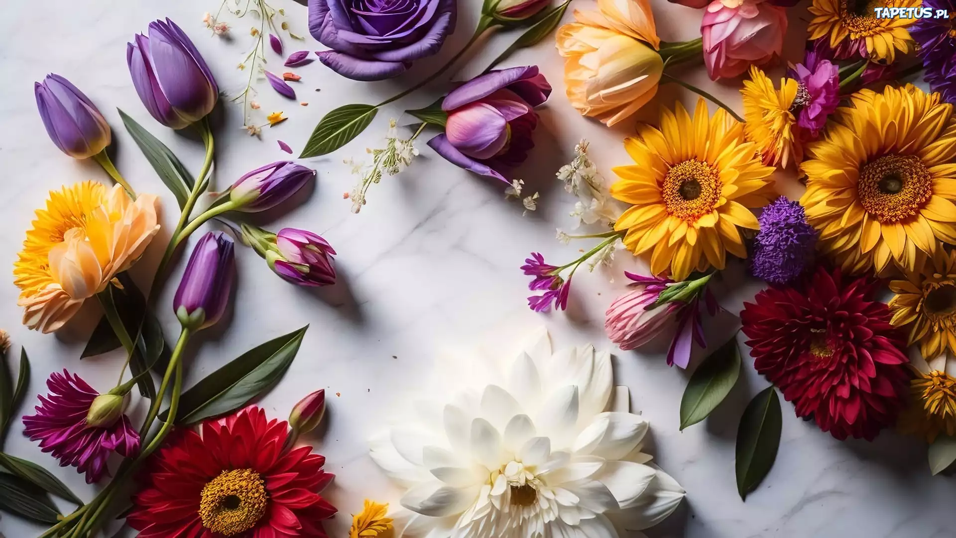 Tapeta Kwiaty, Gerbery, Tulipany, Kompozycja, Grafika